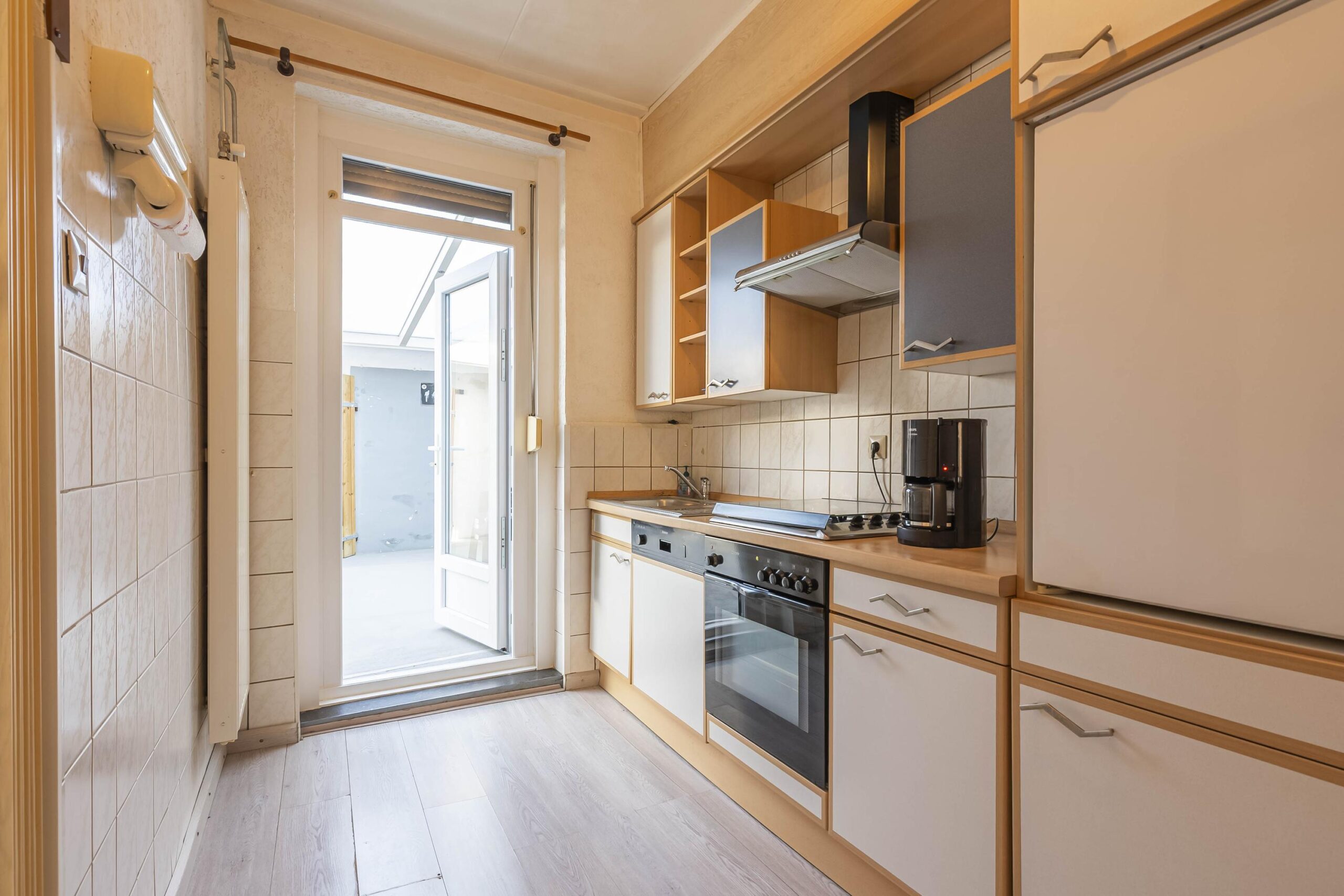 Vanuit de keuken kunt u middels een deur naar de ruime overkapping.