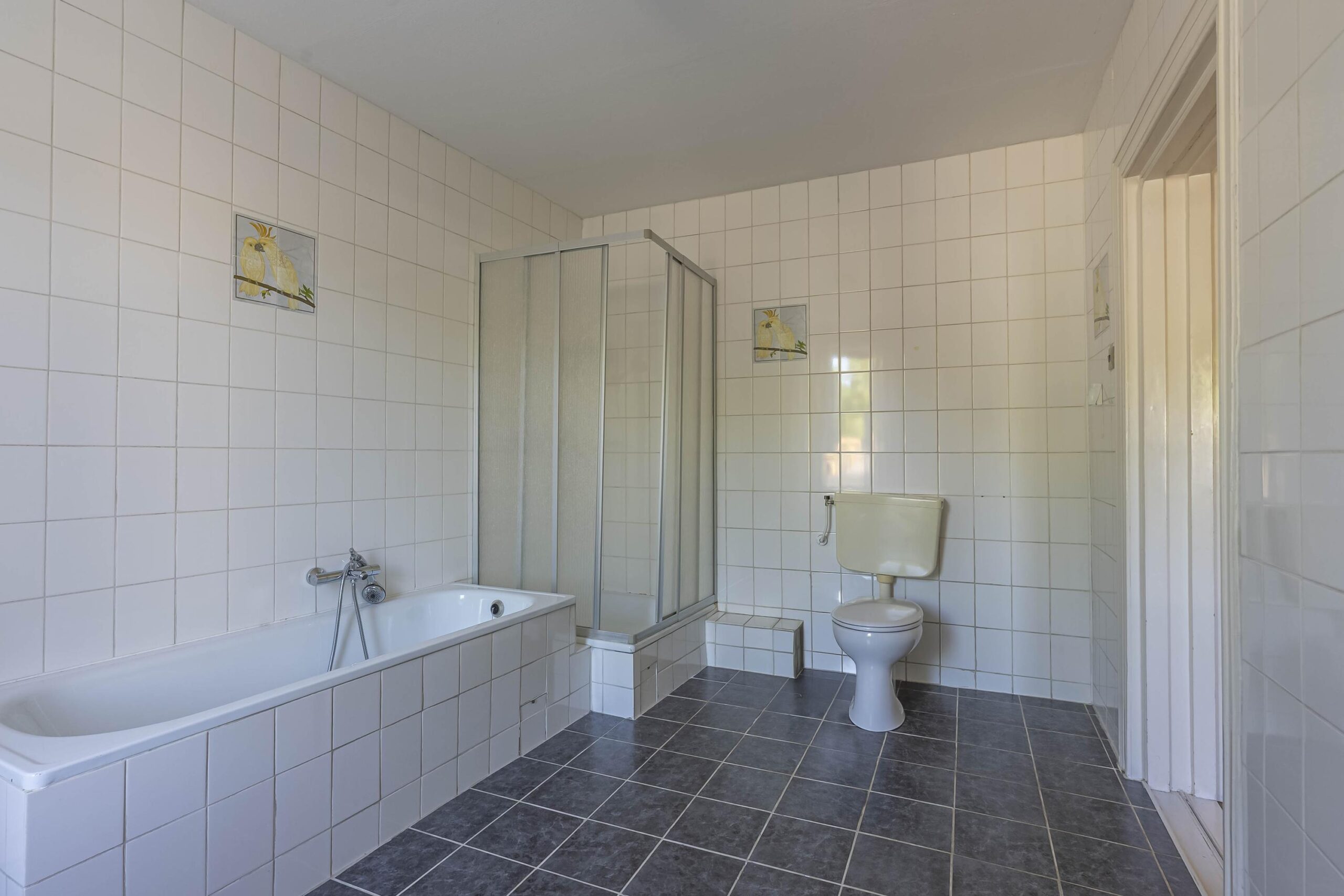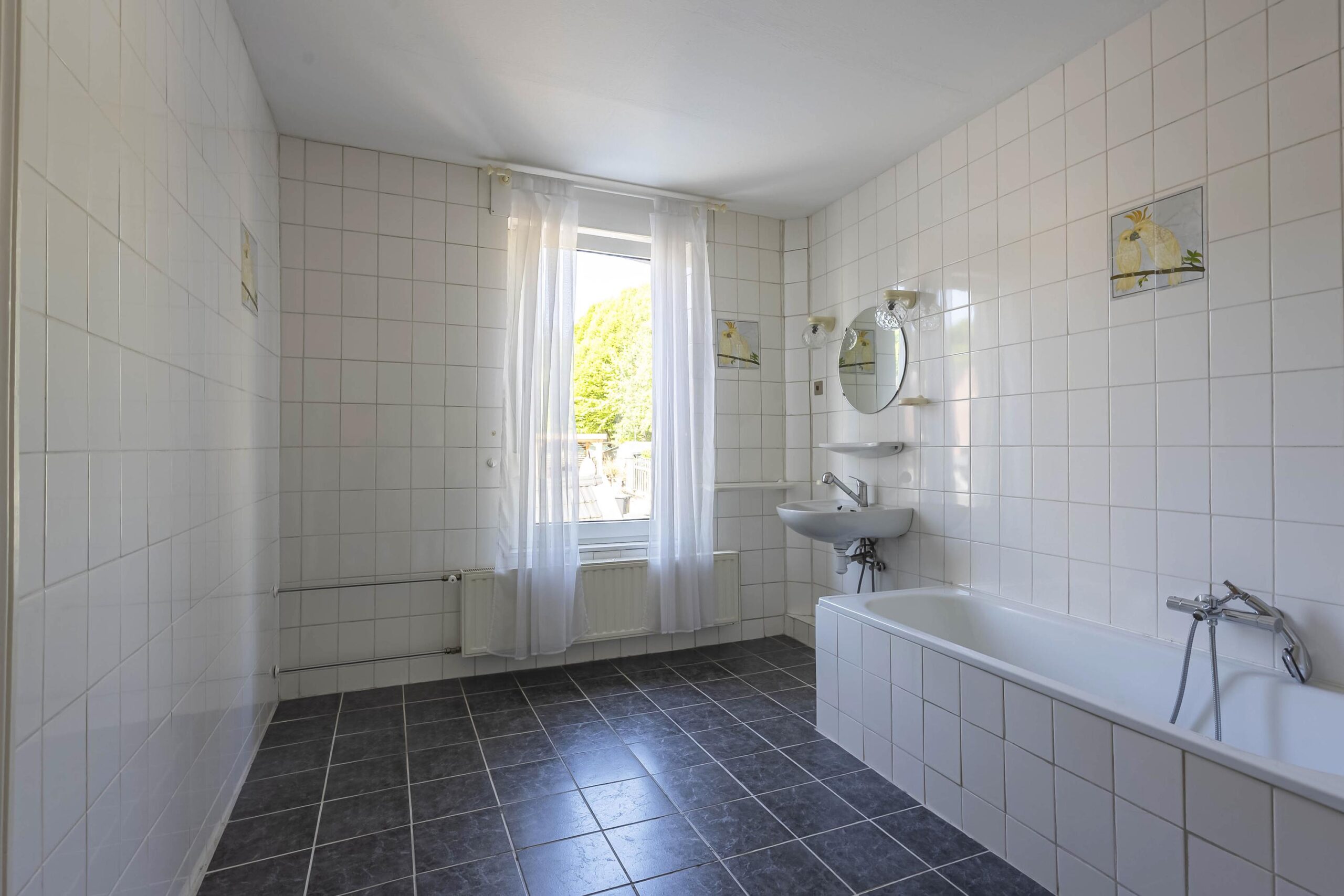 De ruime badkamer is groot ca. 11 m² en is voorzien van een ligbad, douche, vaste wastafel en staand toilet.