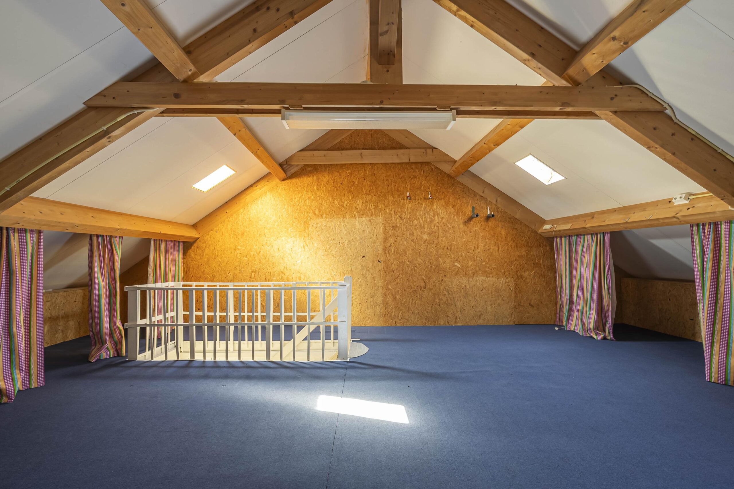 De slaapkamer is groot ca. 37 m² en is voorzien van een dakraam.