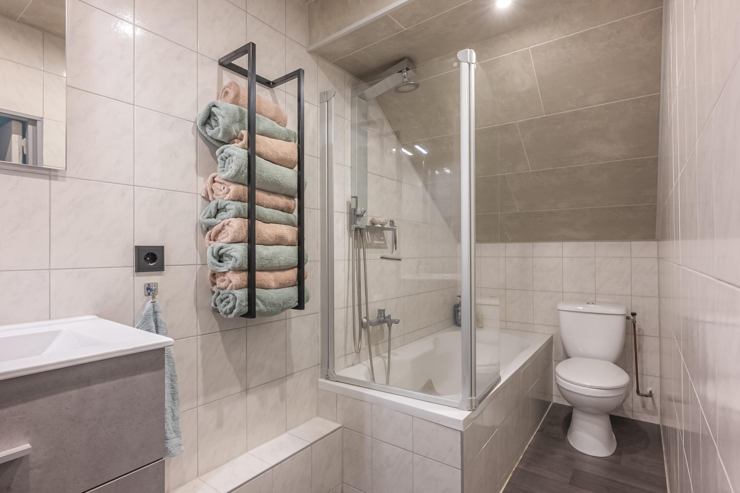 - Badkamervoorzieningen Ligbad, douche, wastafelmeubel, wasmachineaansluiting, ligbad, toilet, douche, wastafelmeubel