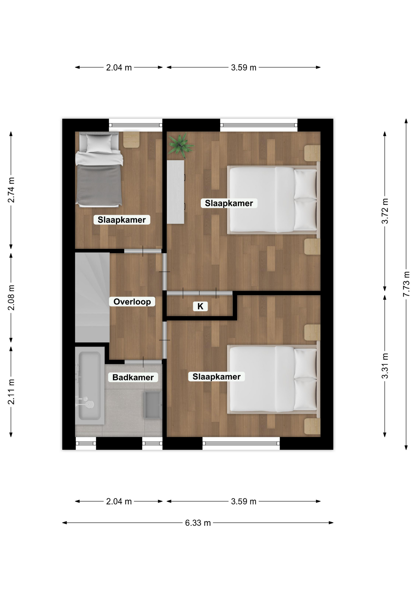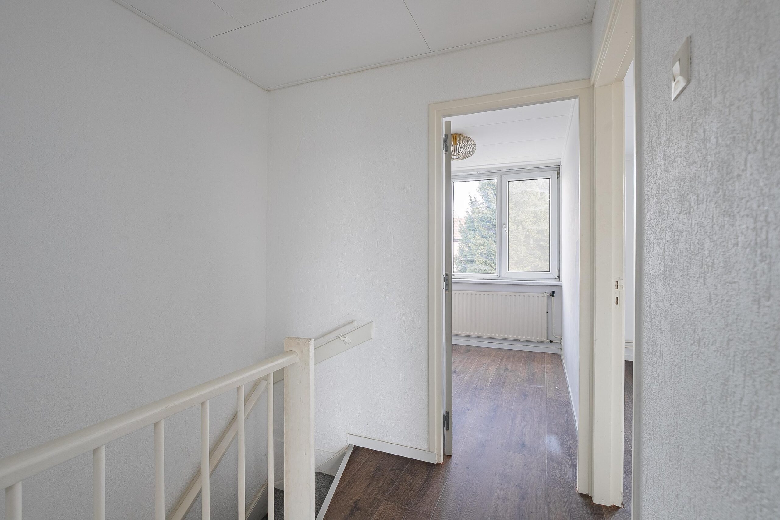 De overloop biedt toegang tot drie nette slaapkamers met strak gestucte wanden en ingebouwde horren. De slaapkamers zijn respectievelijk: