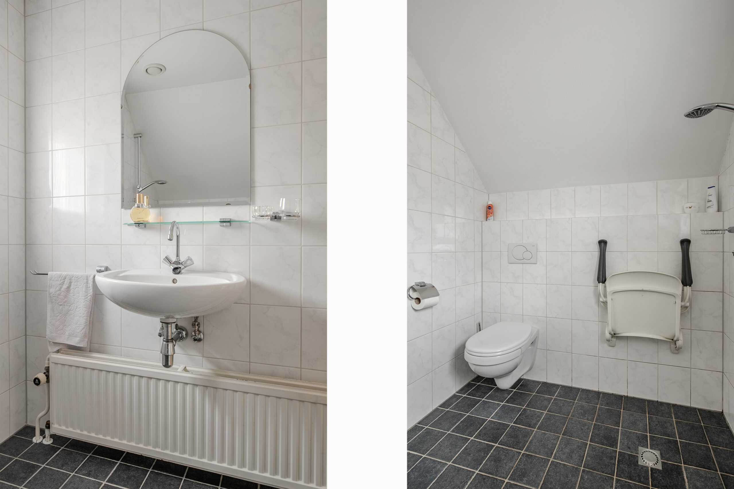 - Badkamervoorzieningen Toilet, douche, wastafel