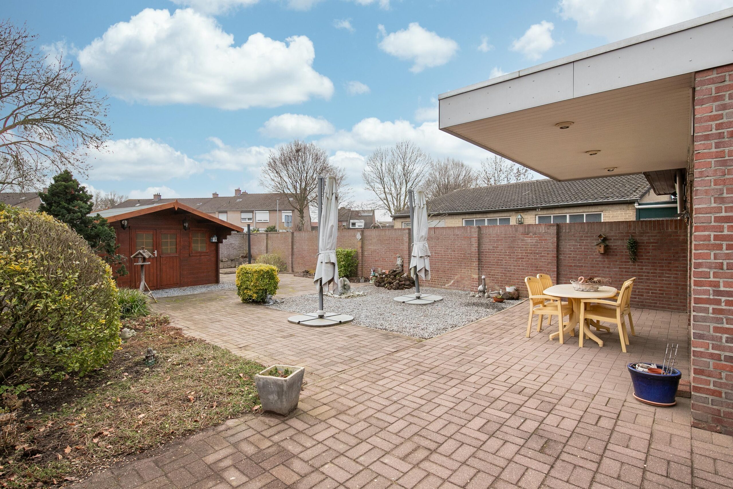 – Zonnige tuin op het zuiden, met overkapping en voldoende privacy;