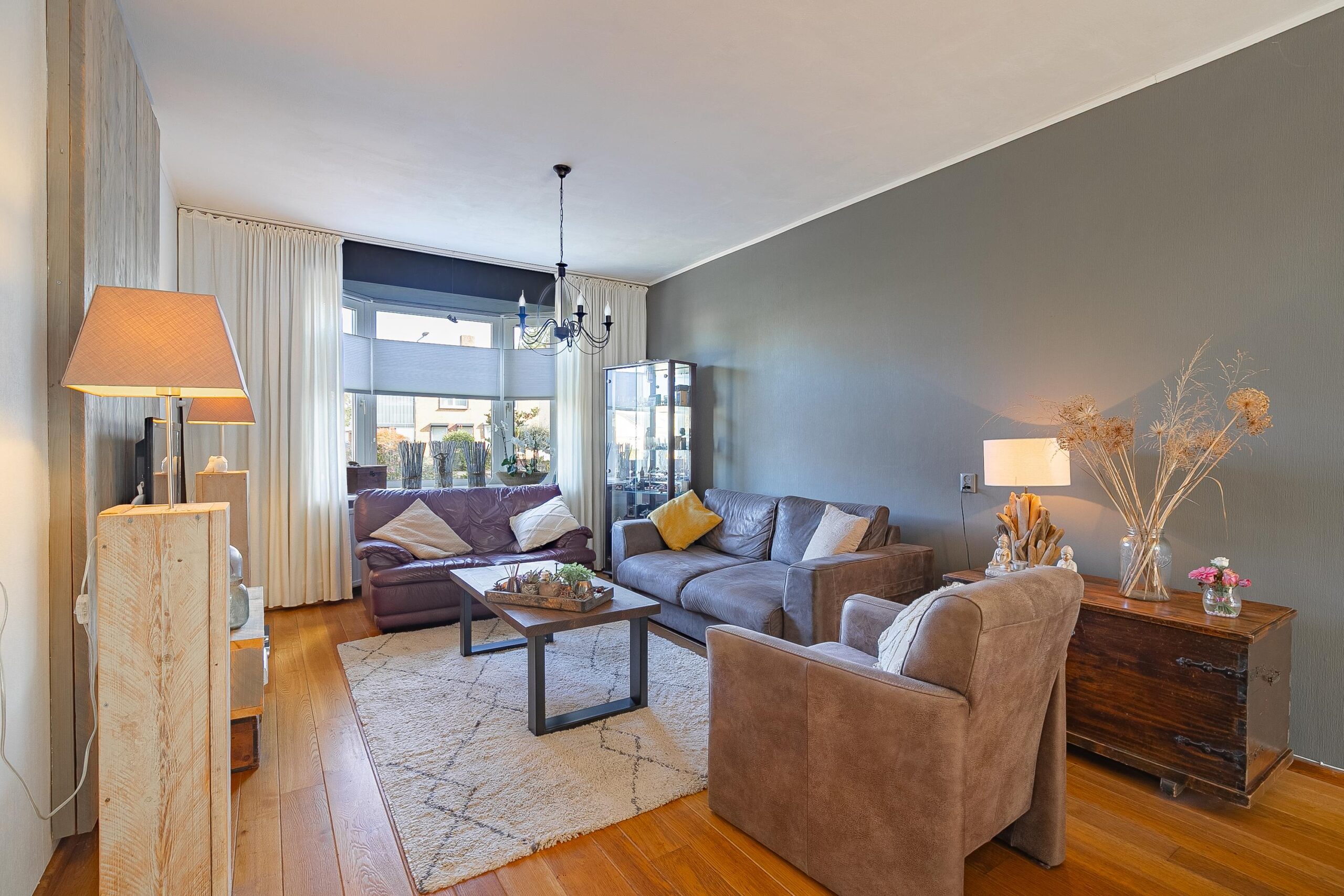Vanuit de hal bereikt u de lichte woonkamer en eetkamer, die door de grote raampartijen volop daglicht ontvangen. Het eetgedeelte sluit aan op de keuken, welke is uitgerust met diverse inbouwapparatuur, waaronder een vierpits gaskookplaat, afzuigkap en een keukenboiler.
