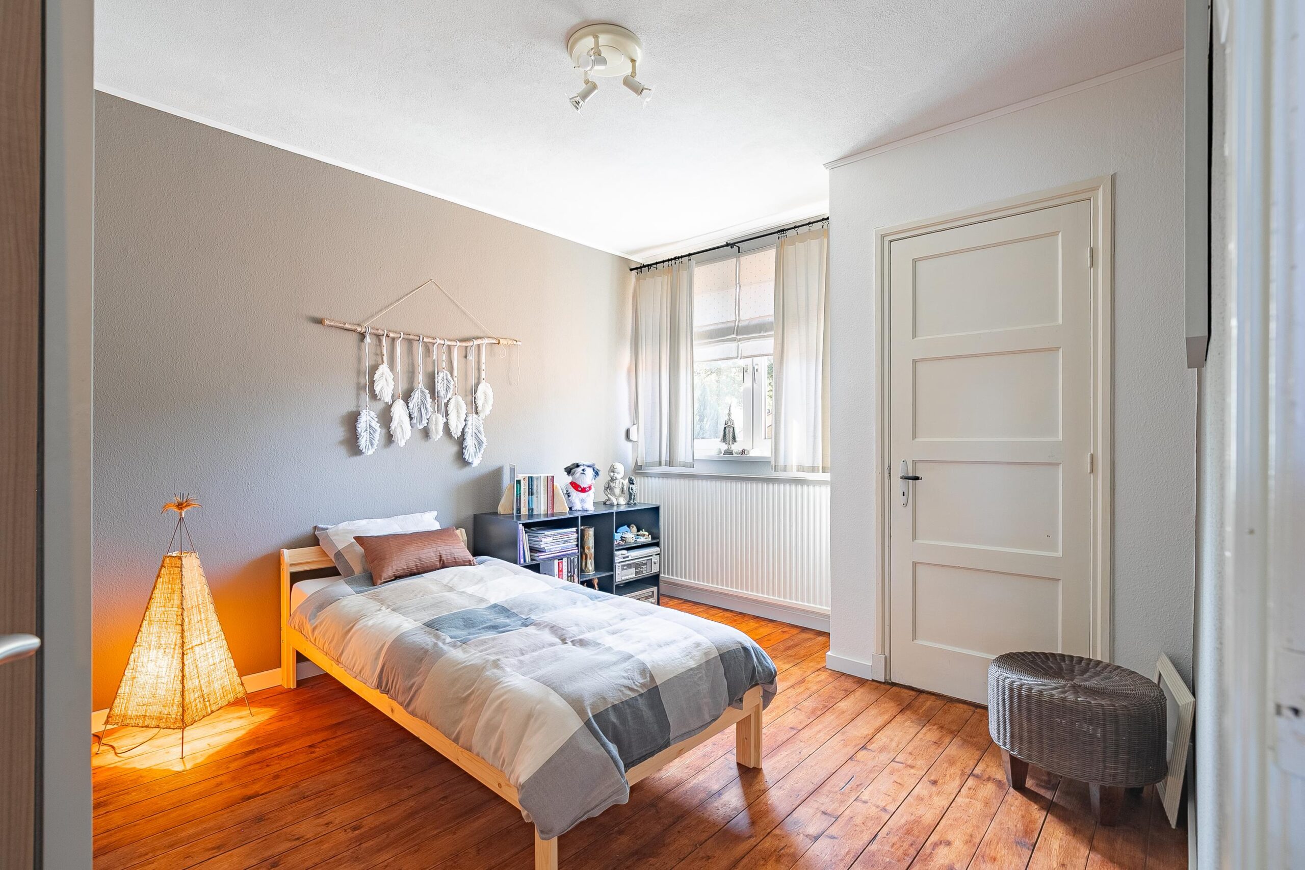 De overloop geeft toegang tot drie slaapkamers. De slaapkamers zijn respectievelijk 13 m², 12 m² en 7 m² groot. De badkamer is volledig betegeld en uitgerust met een douche, bad, toilet en wastafelmeubel.