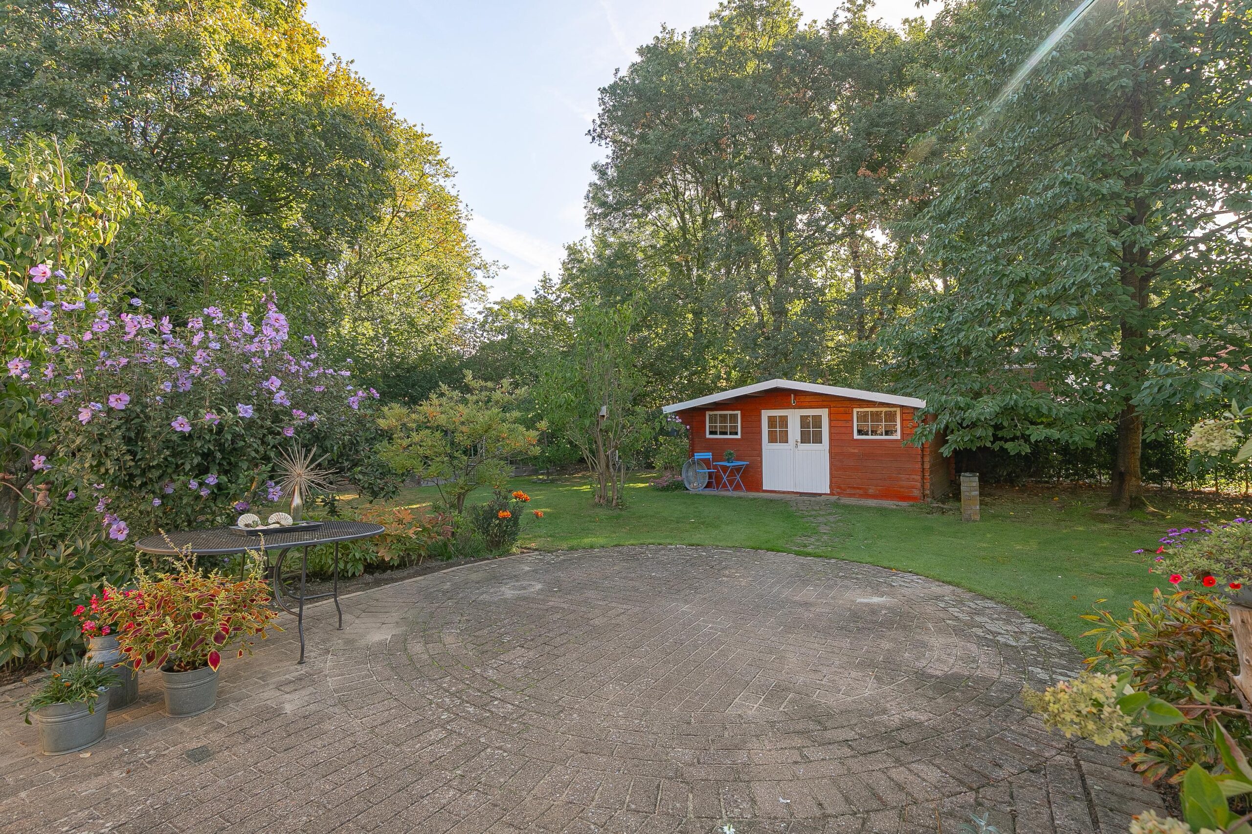 De royale zijtuin is fraai aangelegd en gunstig gelegen op het zuidwesten, waardoor u vrijwel de gehele dag van de zon kunt genieten. In de tuin bevinden zich zowel een stenen berging als een houten berging/schuur, die samen volop ruimte bieden voor opslag van tuinmateriaal, fietsen of hobbyspullen. Daarnaast is de tuin ook via een achterom toegankelijk.