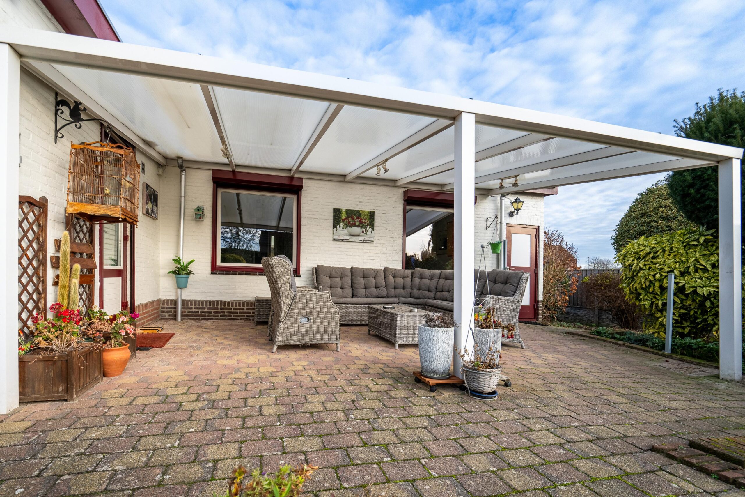 Direct aan de woning bevindt zich een aluminium terrasoverkapping, een heerlijke plek om het hele jaar door van de tuin te genieten. Dankzij de zuidelijke ligging is er sprake van uitstekende bezonning gedurende de dag.