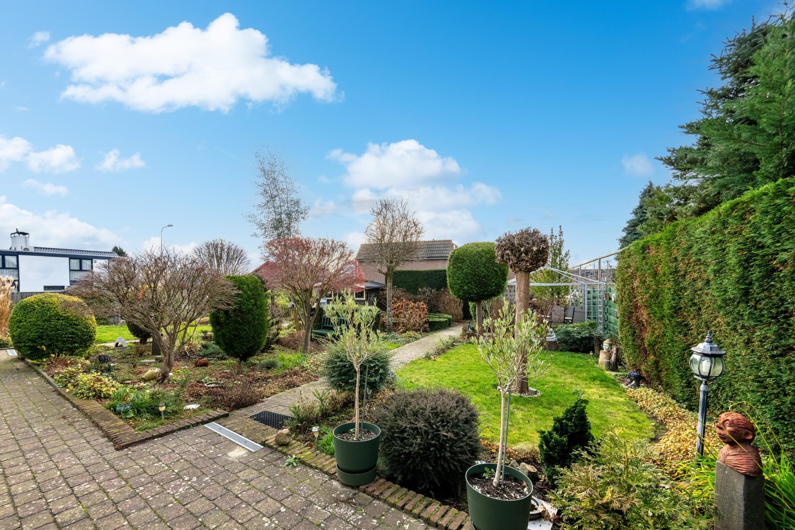 Via de woonkamer, de keuken én de zij-ingangen is de royale en fraai aangelegde achtertuin bereikbaar. Met een afmeting van circa 22 meter diep en 22 meter breed biedt deze tuin volop ruimte en privacy. De tuin is keurig onderhouden, volledig omsloten en nodigt uit tot een fijn buitenleven.