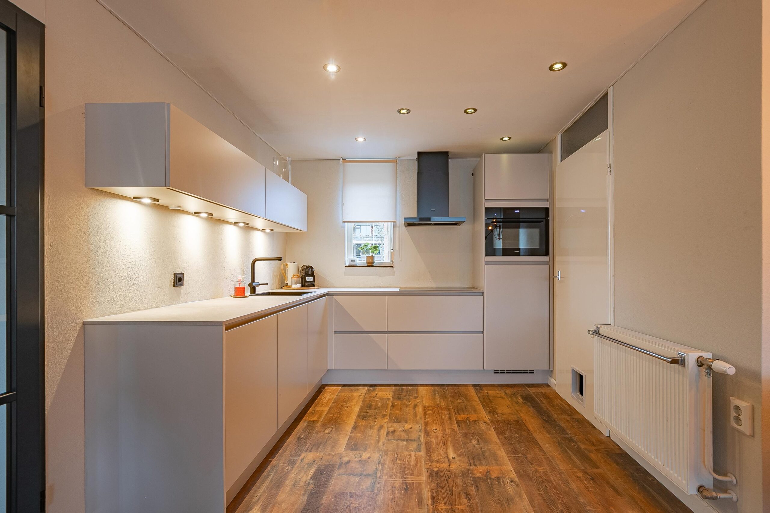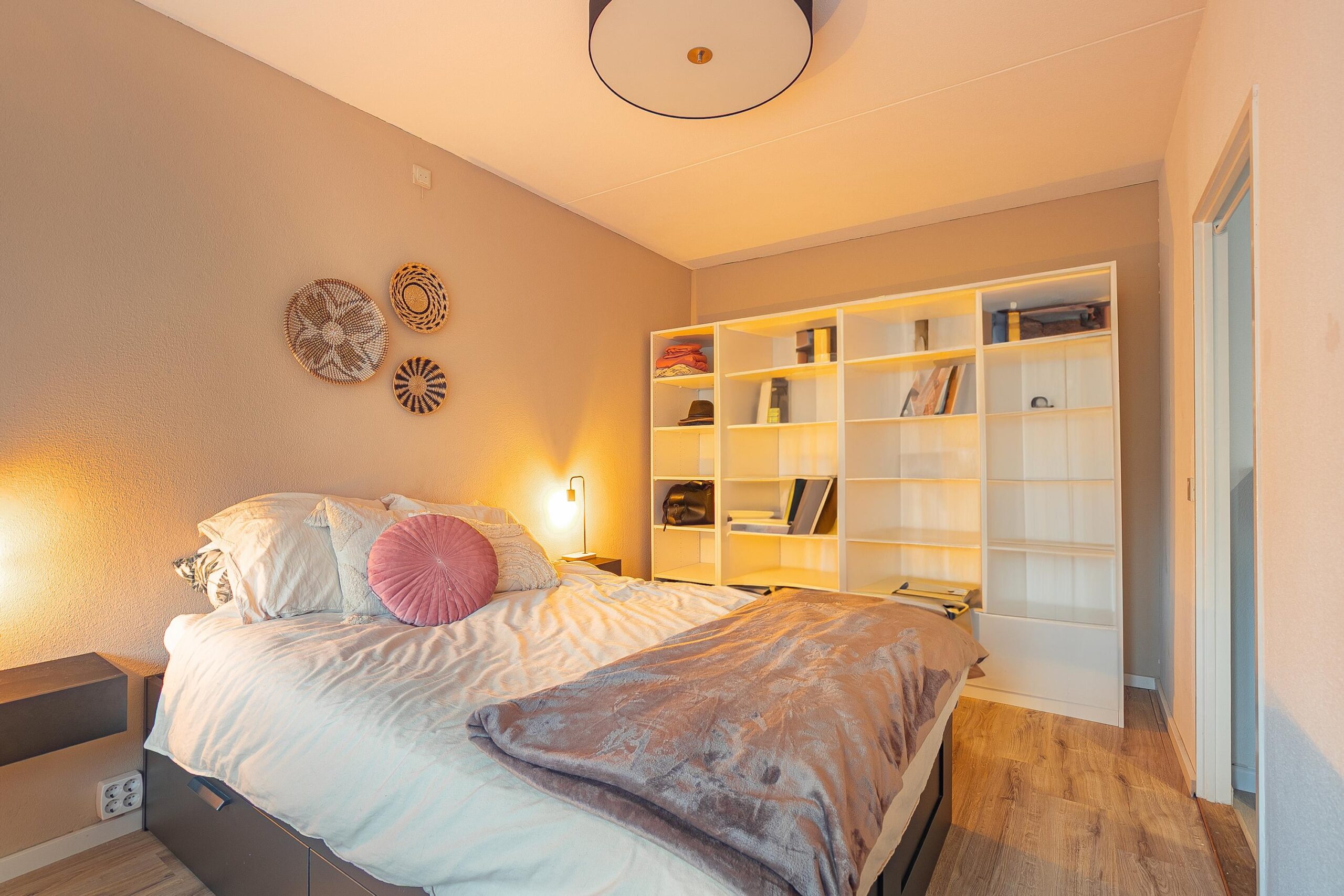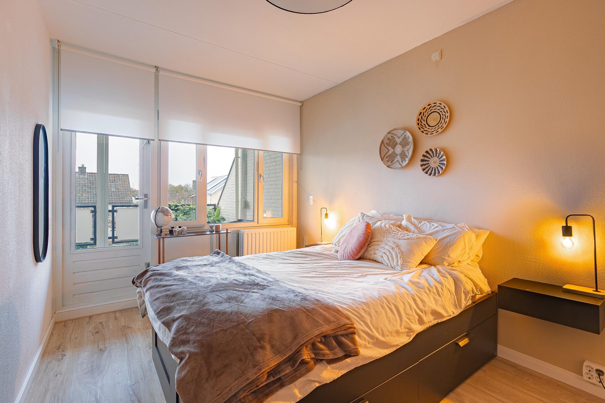 De entreehal biedt toegang tot de meterkast, de woonkamer, de slaapkamer, de badkamer, een separaat toilet en de trap naar de bovenliggende verdieping. De woonkamer beschikt over een grote ramen, wat zorgt voor veel lichtinval, en grenst direct aan de open keuken (woonkamer inclusief keuken ca. 31,5m²) , de berging met cv- en wasaansluiting, en het balkon. De open keuken is in 2025 geplaatst en uitgerust met een vaatwasser, inductiekookplaat, afzuiging, combi-oven en koelkast. De naastgelegen berging biedt naast opbergruimte ook plaats aan de cv-installatie (Vaillant, huur uit 2019) en de was-aansluitingen. De slaapkamer (ca. 12m²) op de begane grond heeft via een tuindeur direct toegang tot het balkon. Daarbij is er toegang tot de andere slaapkamer van ca. 8m². De badkamer is evenals de keuken geplaatst in 2025 en vanuit de hal bereikbaar. Deze is voorzien van een douche en een modern wastafelmeubel. Het separate toilet is uitgerust met een wandcloset en een fonteintje.