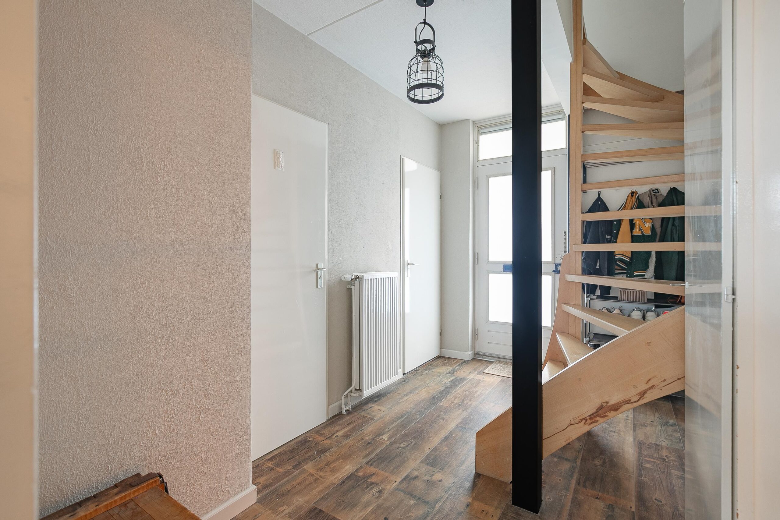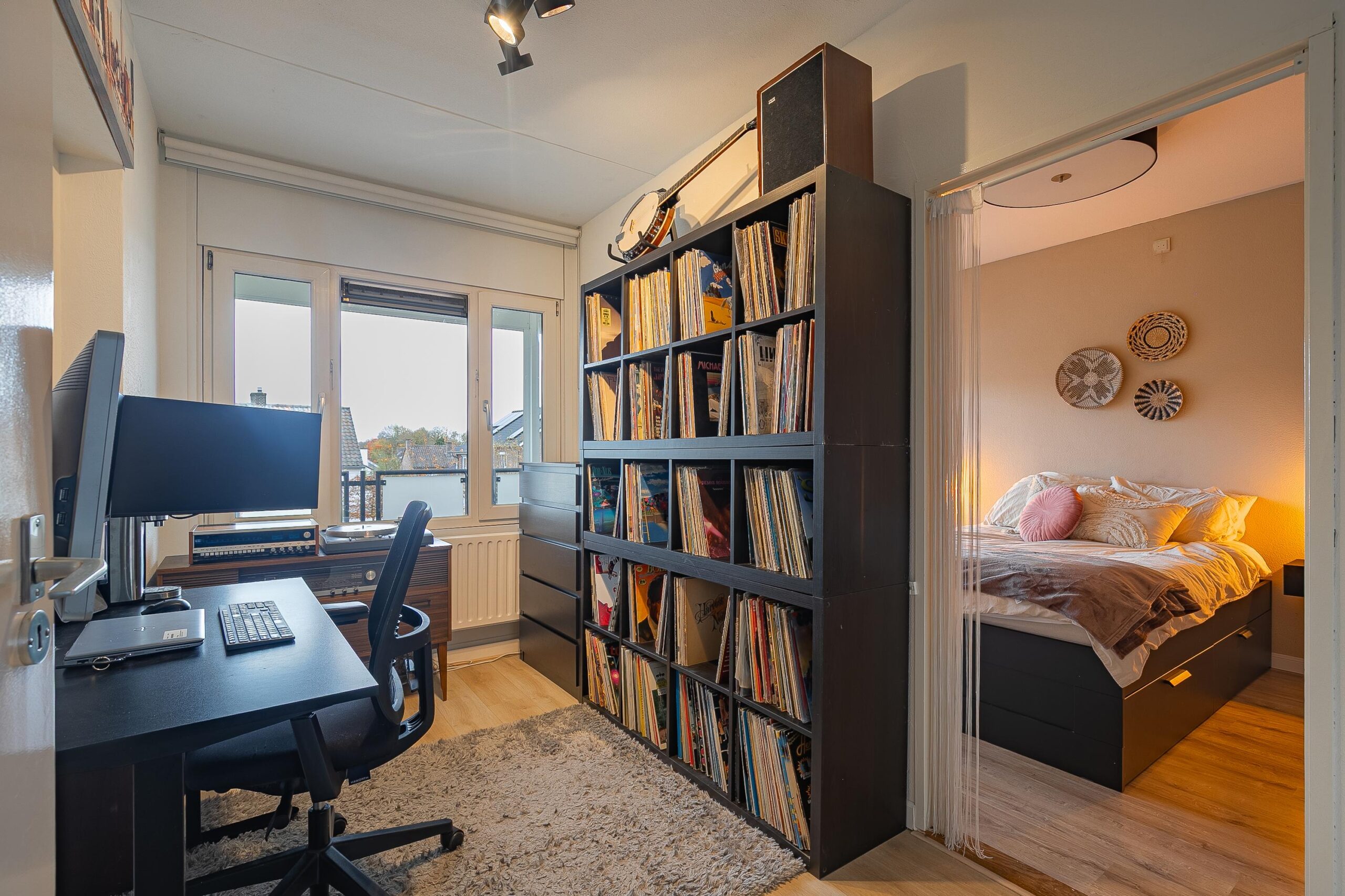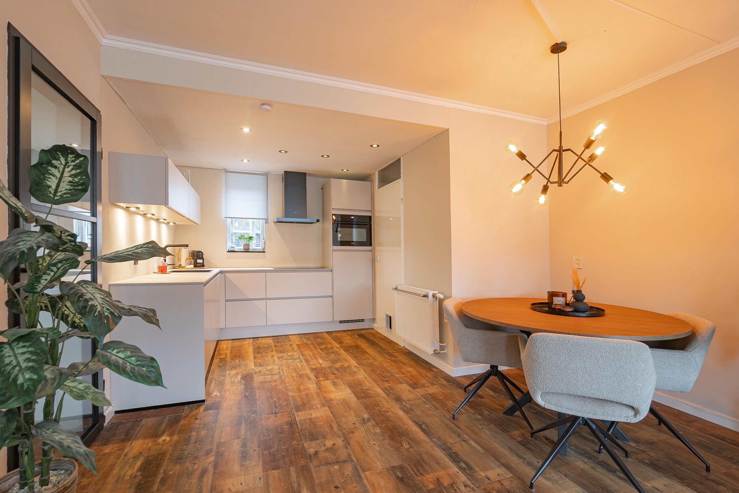 De entreehal biedt toegang tot de meterkast, de woonkamer, de slaapkamer, de badkamer, een separaat toilet en de trap naar de bovenliggende verdieping. De woonkamer beschikt over een grote ramen, wat zorgt voor veel lichtinval, en grenst direct aan de open keuken (woonkamer inclusief keuken ca. 31,5m²) , de berging met cv- en wasaansluiting, en het balkon. De open keuken is in 2025 geplaatst en uitgerust met een vaatwasser, inductiekookplaat, afzuiging, combi-oven en koelkast. De naastgelegen berging biedt naast opbergruimte ook plaats aan de cv-installatie (Vaillant, huur uit 2019) en de was-aansluitingen. De slaapkamer (ca. 12m²) op de begane grond heeft via een tuindeur direct toegang tot het balkon. Daarbij is er toegang tot de andere slaapkamer van ca. 8m². De badkamer is evenals de keuken geplaatst in 2025 en vanuit de hal bereikbaar. Deze is voorzien van een douche en een modern wastafelmeubel. Het separate toilet is uitgerust met een wandcloset en een fonteintje.