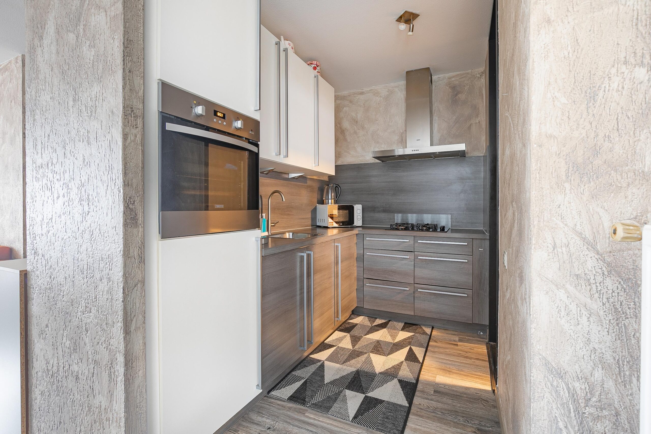 Entree/hal met toilet, meterkast, trapopgang en toegang tot de leefruimte. De leefruimte (ca. 30m²) is voorzien van een laminaatvloer en staat in verbinding met de halfopen keuken, die in 2020 is geplaatst. De keuken, in hoekopstelling, beschikt over een 4-pits gaskookplaat, spoelbak, combi-oven, ingebouwde koelkast, afzuigkap en een vrijstaande vaatwasser. Vanuit de keuken is er toegang tot de technische ruimte waar de Cv-installatie zich bevindt. Tevens is er een bijkeuken waar momenteel de wasmachineaansluiting aanwezig is. Vanuit zowel de eetkamer als de bijkeuken is er toegang tot de achtertuin.