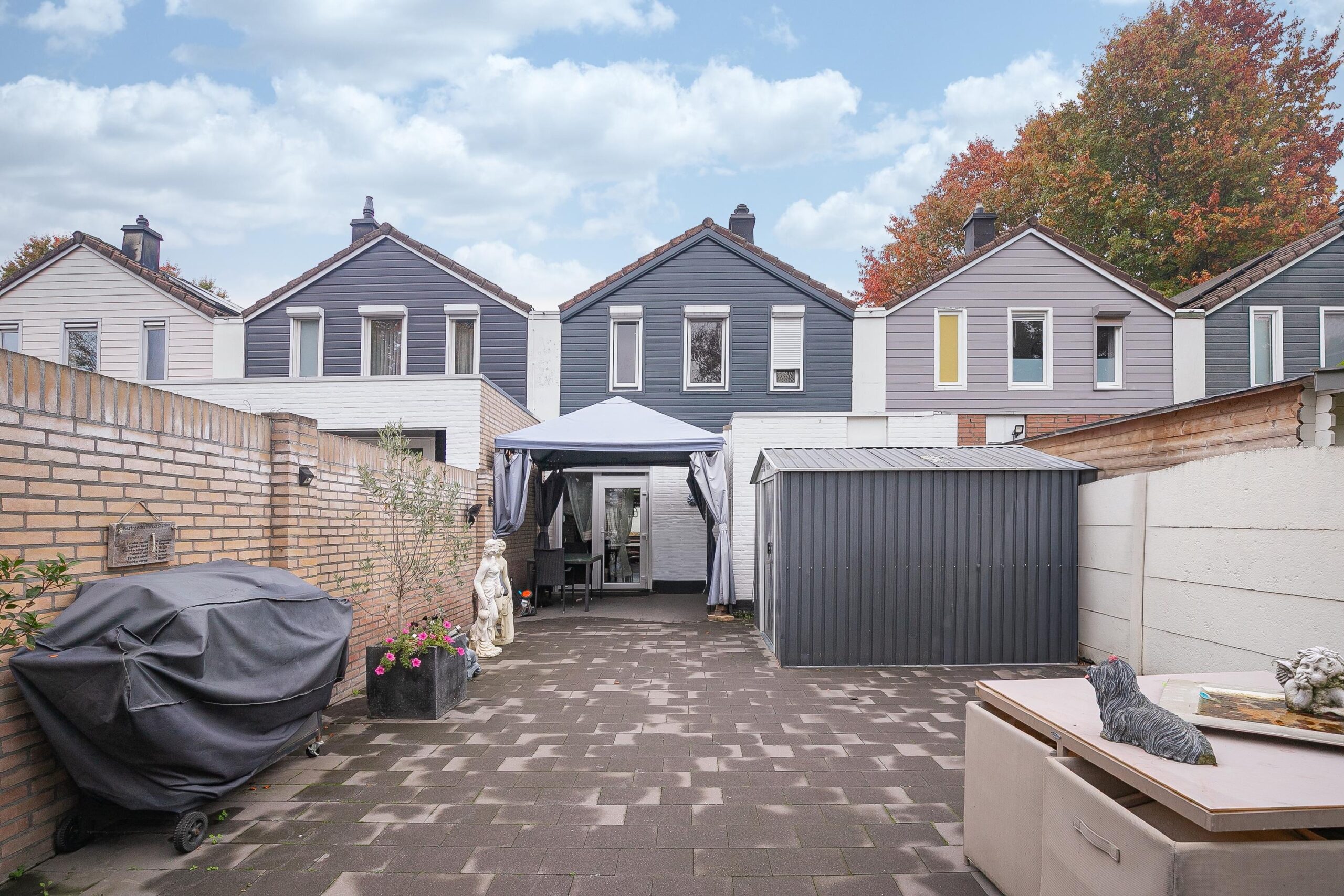Geheel omsloten en onderhoudsvriendelijke achtertuin met achterom, gesitueerd op het zuiden. De tuin is volledig beklinkerd en voorzien van een terrasoverkapping, een vrijstaand tuinhuis en een vijver. Aan de achterzijde van de woning is er geen inkijk in de tuin.
