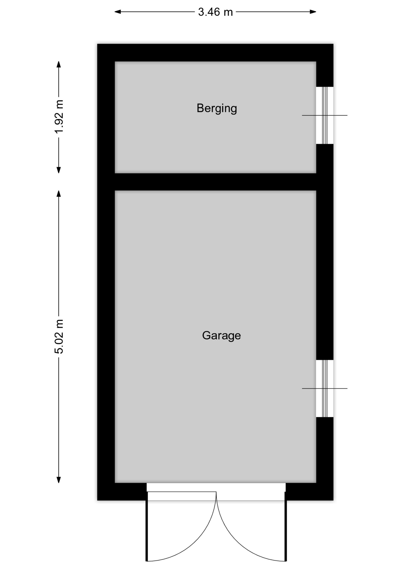 De ruime garage (circa 17 m²) is bereikbaar via de oprit en via de tuin en beschikt over openslaande houten deuren. Achter de garage bevindt zich nog een extra berging van circa 7 m².