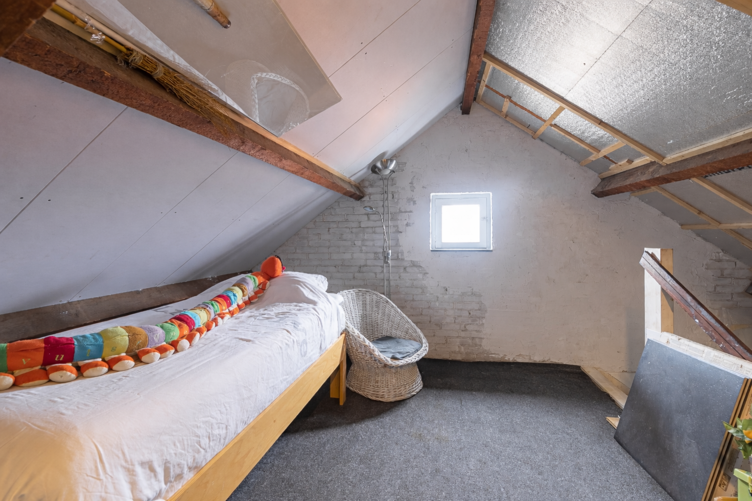 Via een vaste trap bereikt u de zolderruimte van circa 17 m². Deze ruimte is multifunctioneel en kan bijvoorbeeld dienen als derde slaapkamer, hobbyruimte of werkruimte.
