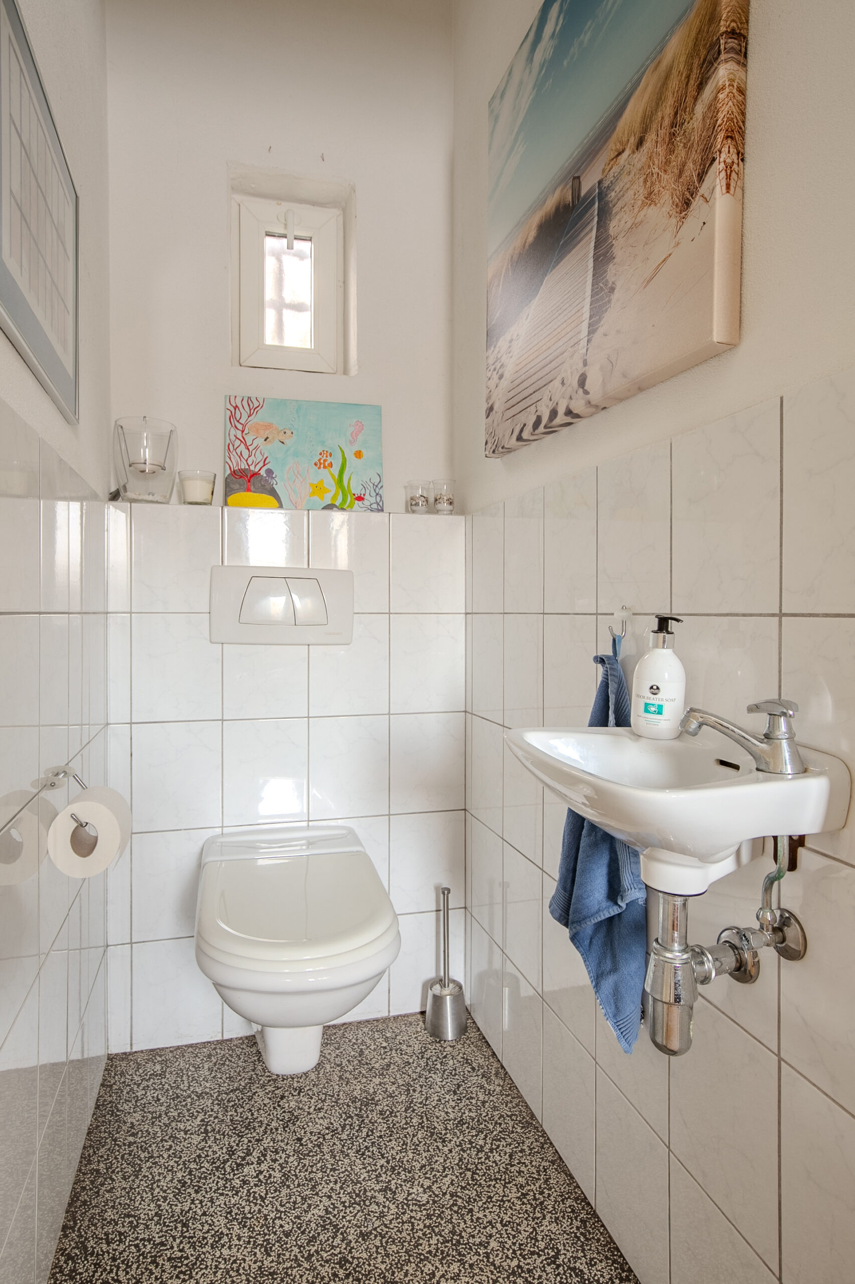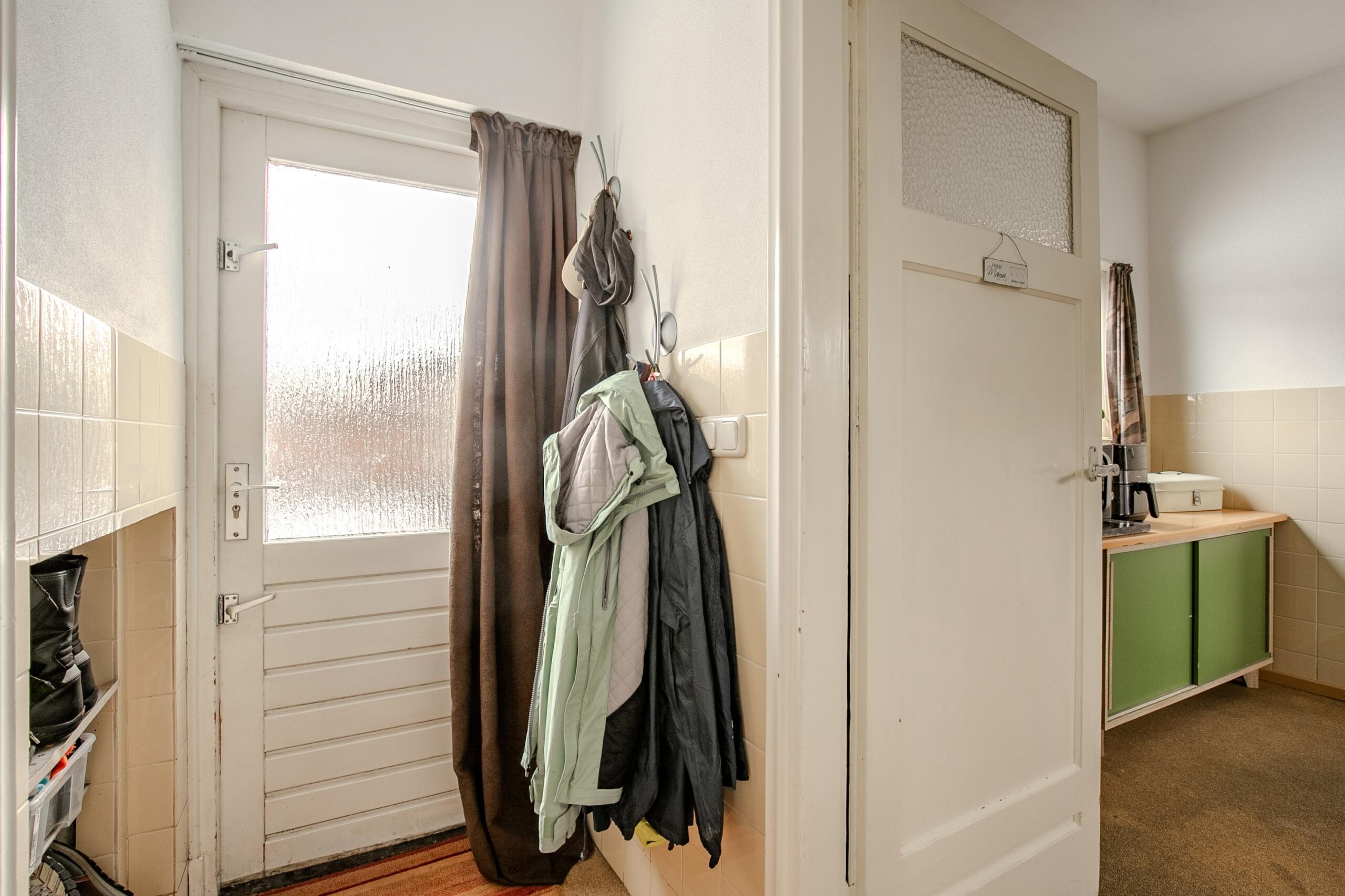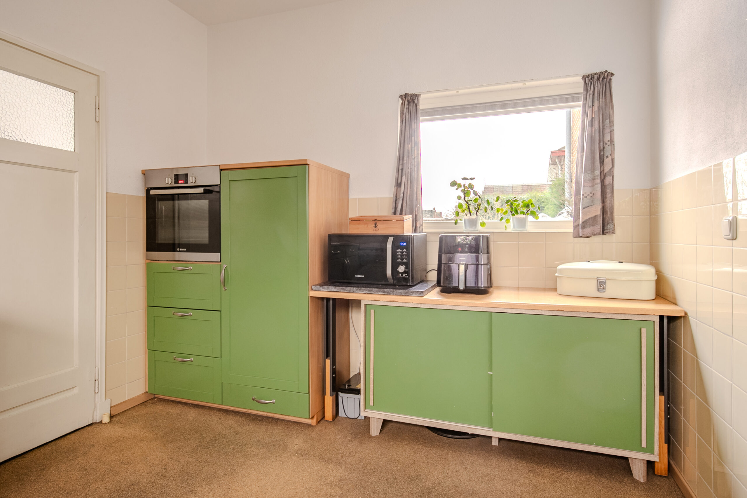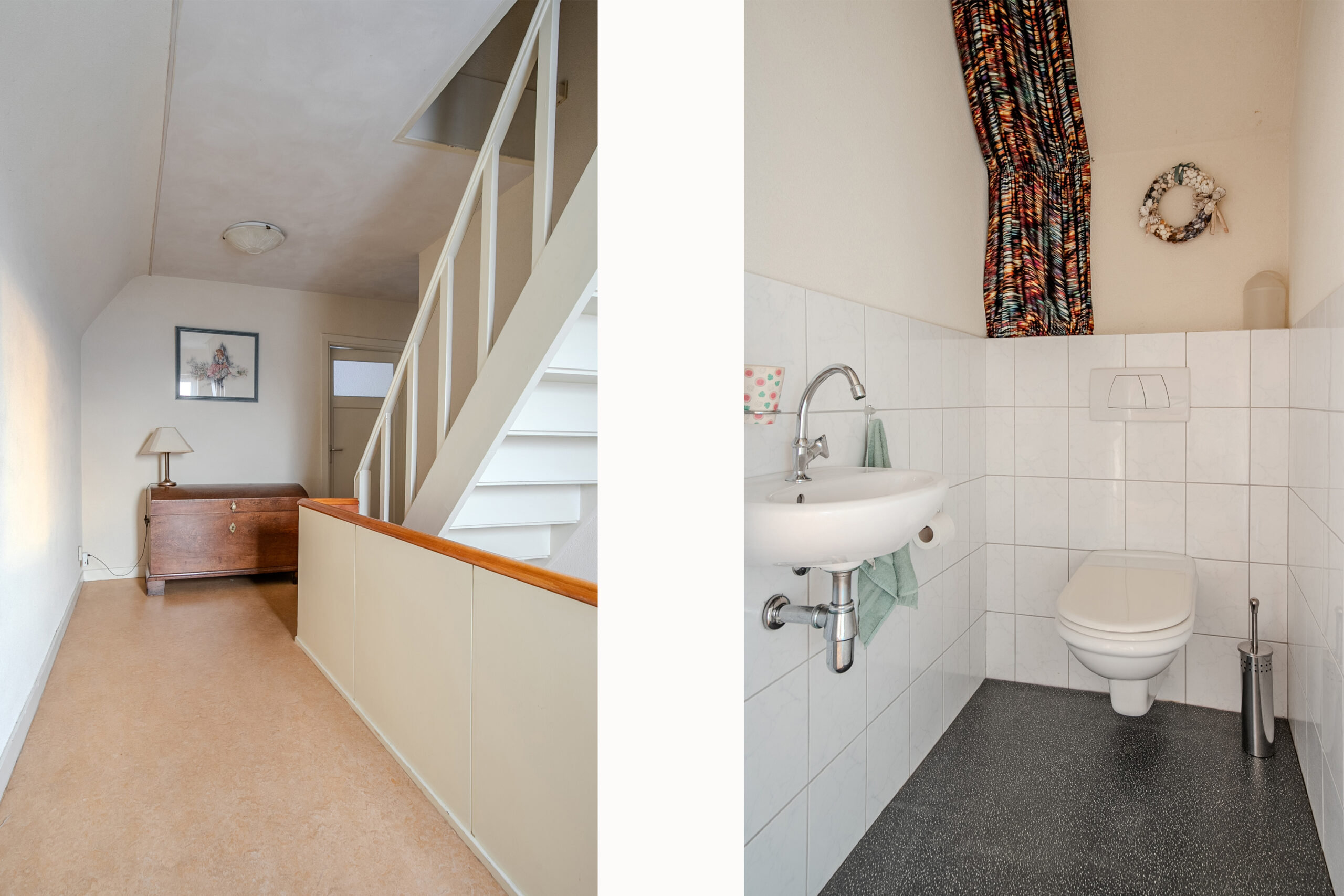 Aan de linkzijde van het huis is de entree van het huis die gevormd wordt door een overdekte entree waar de jaren ’30 sfeer direct voelbaar is. Deze sfeer wordt in de ruime ontvangsthal verder versterkt door de originele tegeltjesvloer, de trap, de glas-in-lood-ramen en de paneeldeuren. Er is een woonkamer en-suite die gescheiden kan worden door de originele schuifdeuren met glas-in-lood. Zo is er voorkamer met marmeren schouw van 4.02 x 3.79 en de achterkamer/woonkamer van 4.46 x 4.02, beiden met een houten eikenvloer. In de achterkamer is eveneens een schouw met een pelletkachel. De woonkamer geeft toegang tot de eetkamer van 3.87 x 3.28 met grindvloer. Met deze indeling is er plek voor een werkkamer, een speelkamer, een hobbykamer te combineren met een gezellige woon- en eetkamer. Deze drie ruimtes hebben een totale oppervlakte van 36 m². Voor elk wat wils! Vanuit de eetkamer is er een directe toegang met de lichte keuken, hier is het prettig werken doordat er aan beide zijden ramen zijn. Deze ruimte is eveneens voorzien van een grindvloer en een keukeninstallatie met gaskookplaat, afzuigkap, koelkast, oven en vaatwasser. De kamers en keuken hebben samen een oppervlakte van maar liefst 48 m². Achter de keuken is een klein portaal (met schoenenkast) en dit geeft toegang tot het toilet, de badkamer en de achtertuin. Het toilet is deels betegeld en heeft een zwevend toilet en fonteintje. De badkamer is ruim, geheel betegeld en beschikt over een ligbad, een douchecabine, dubbel wastafelmeubel en de aansluitpunten voor de wasmachine.