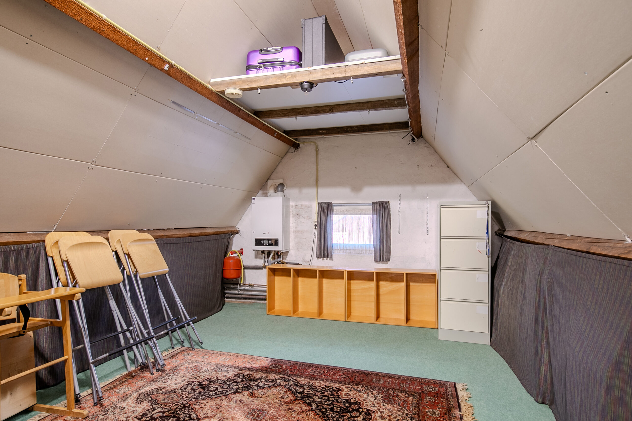 Via een vaste trap is de multifunctionele zolderruimte bereikbaar 7.28 x 2.81, ideaal als speelruimte, hobbyruimte en opslag. Deze open ruimte heeft een raam in de voorgevel en een raam in de achtergevel en er is een hoogte van 3,14 m. Hier is het mogelijk om een vierde slaapkamer te realiseren. Hier is de combi c.v.-installatie geplaatst (Nefit 2020 eigendom).