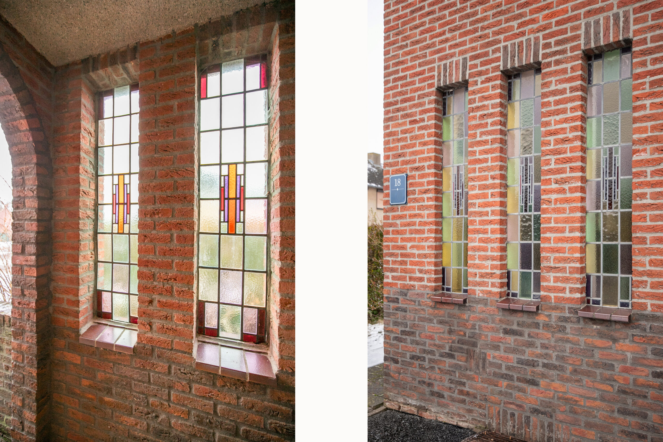 * Karakteristiek woonhuis met veel originele elementen zoals veel glas-in-lood ramen, schuifdeur, binnendeuren enz.