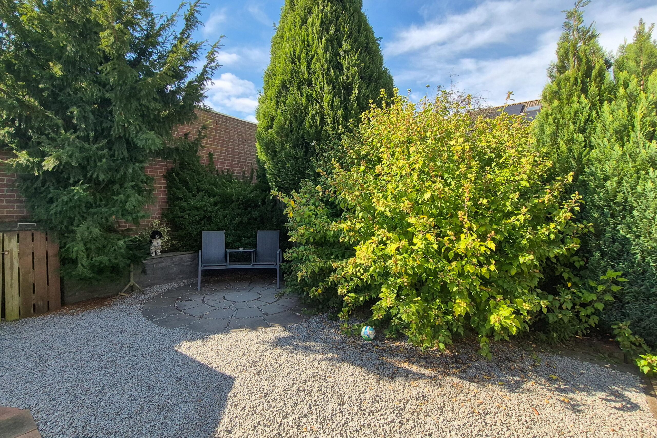 De achtertuin is zuidwestelijk georiënteerd en voorzien van een fijne terrasoverkapping en tuinhuisje (circa 5 m2). De tuin is grotendeels onderhoudsvriendelijk aangelegd en voorzien van betegeling, split en borders met beplantingen. De voortuin is ook onderhoudsvriendelijk aangelegd en voorzien van een oprit.