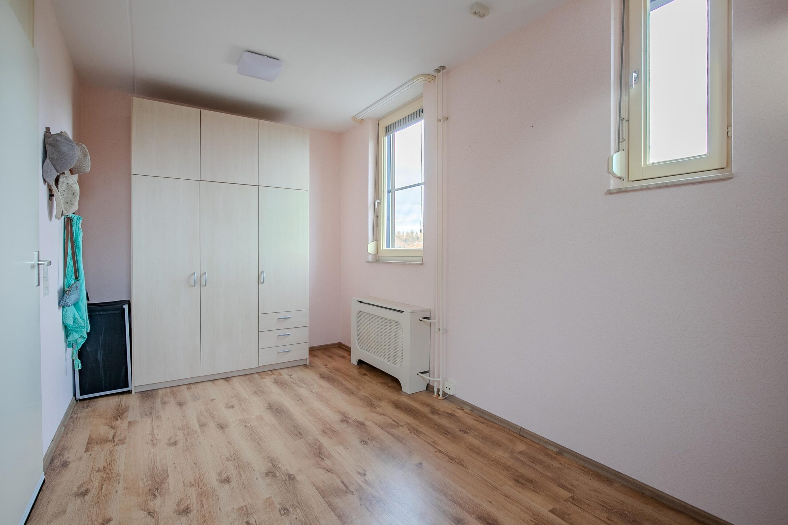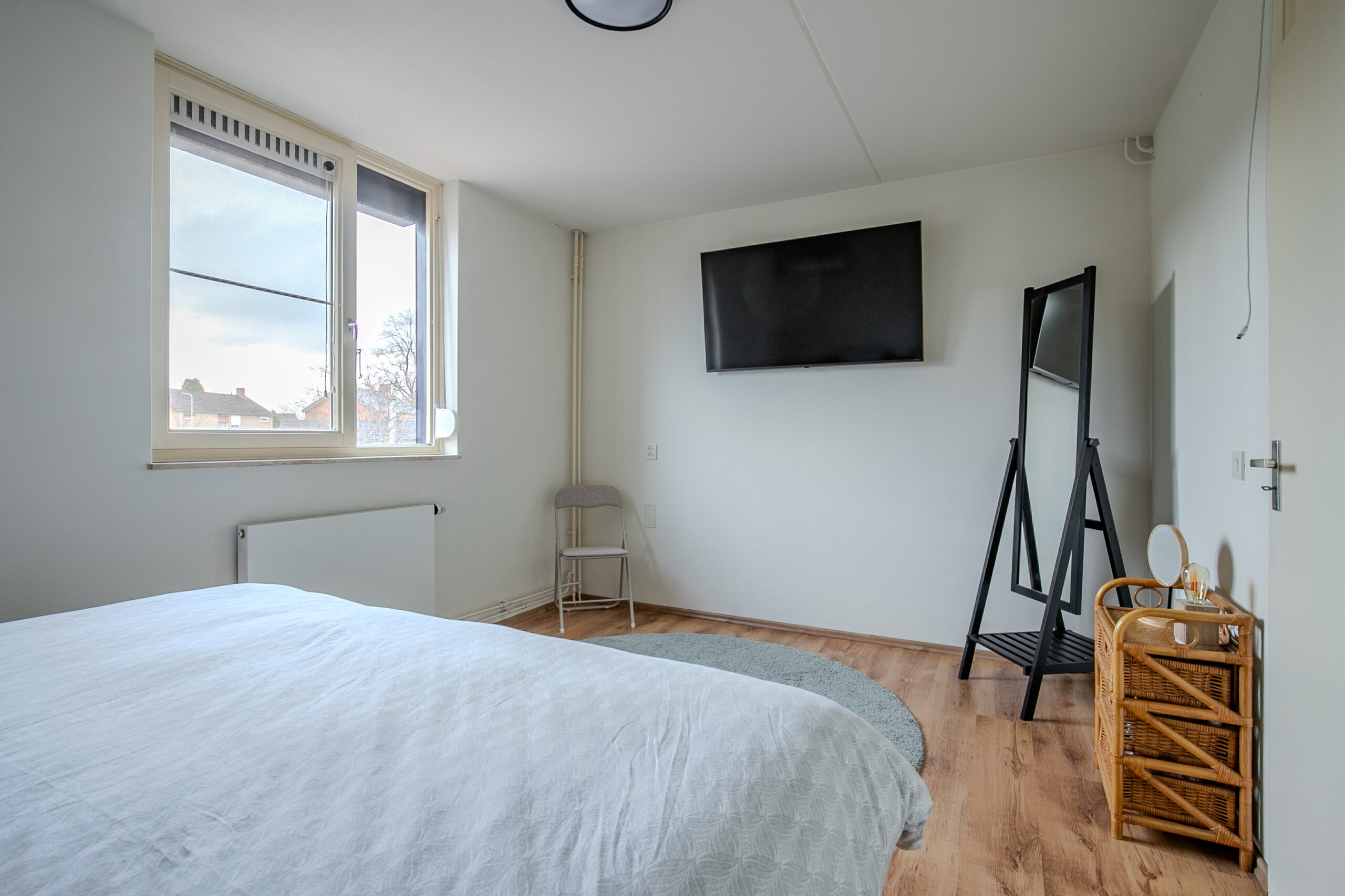 Overloop die toegang geeft tot de twee slaapkamers en de badkamer. De slaapkamers zijn respectievelijk circa 13 m2 en 15 m2, allen voorzien van laminaatvloeren en rolluiken. Het is eenvoudig mogelijk om een slaapkamer op te splitsen zodat er in totaal drie slaapkamers zijn. Ter inspiratie is er een extra plattegrond hiervan toegevoegd. De badkamer is geheel betegeld, circa 4 m2 en voorzien van een douche, wastafel met meubel, designradiator en zwevend closet.