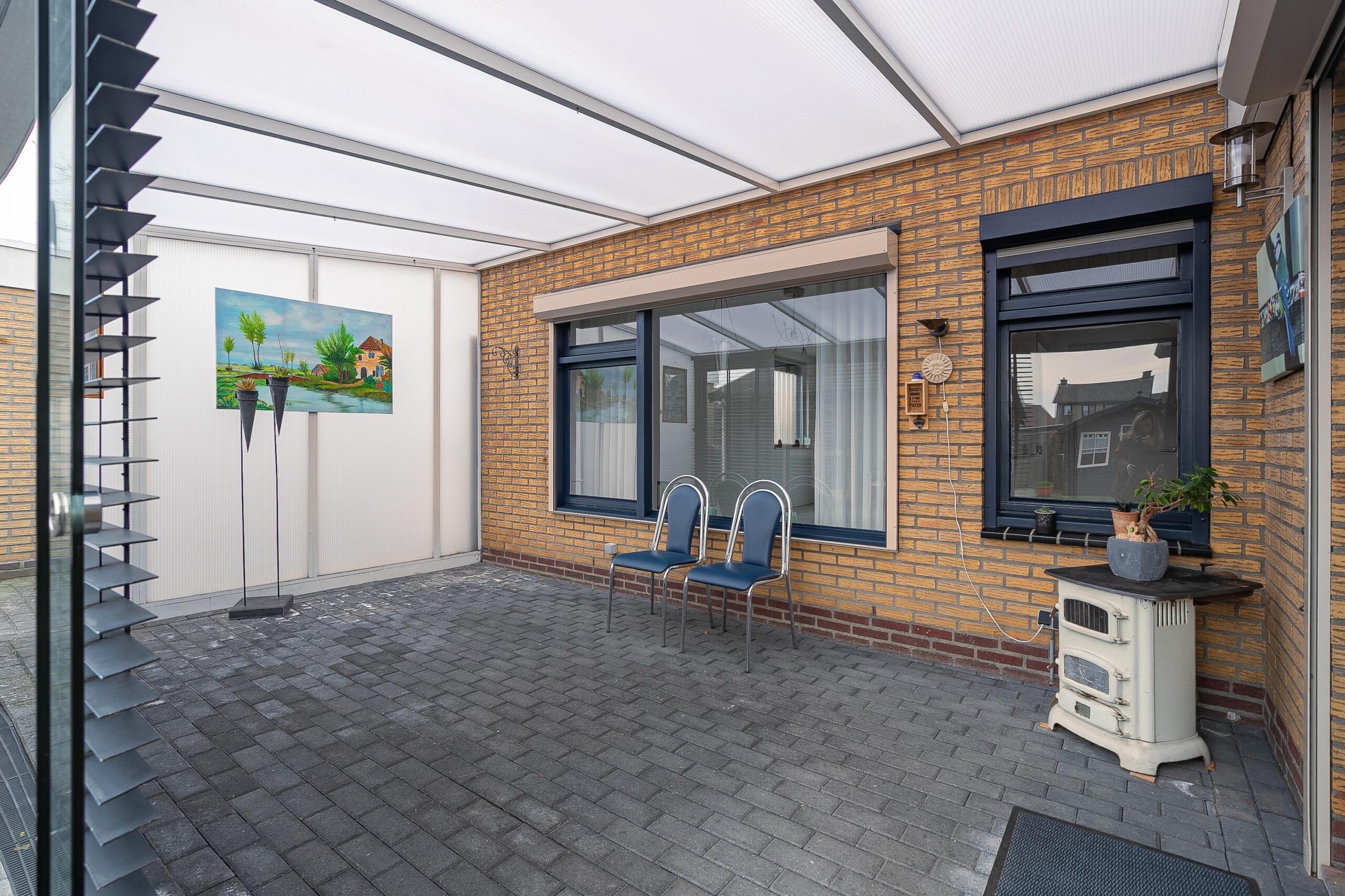 De serre is een heerlijke toevoeging aan het woongenot. Deze is circa 17 m2 en is voorzien van schuifbare glaspanelen, waardoor het ook opengezet kan worden.