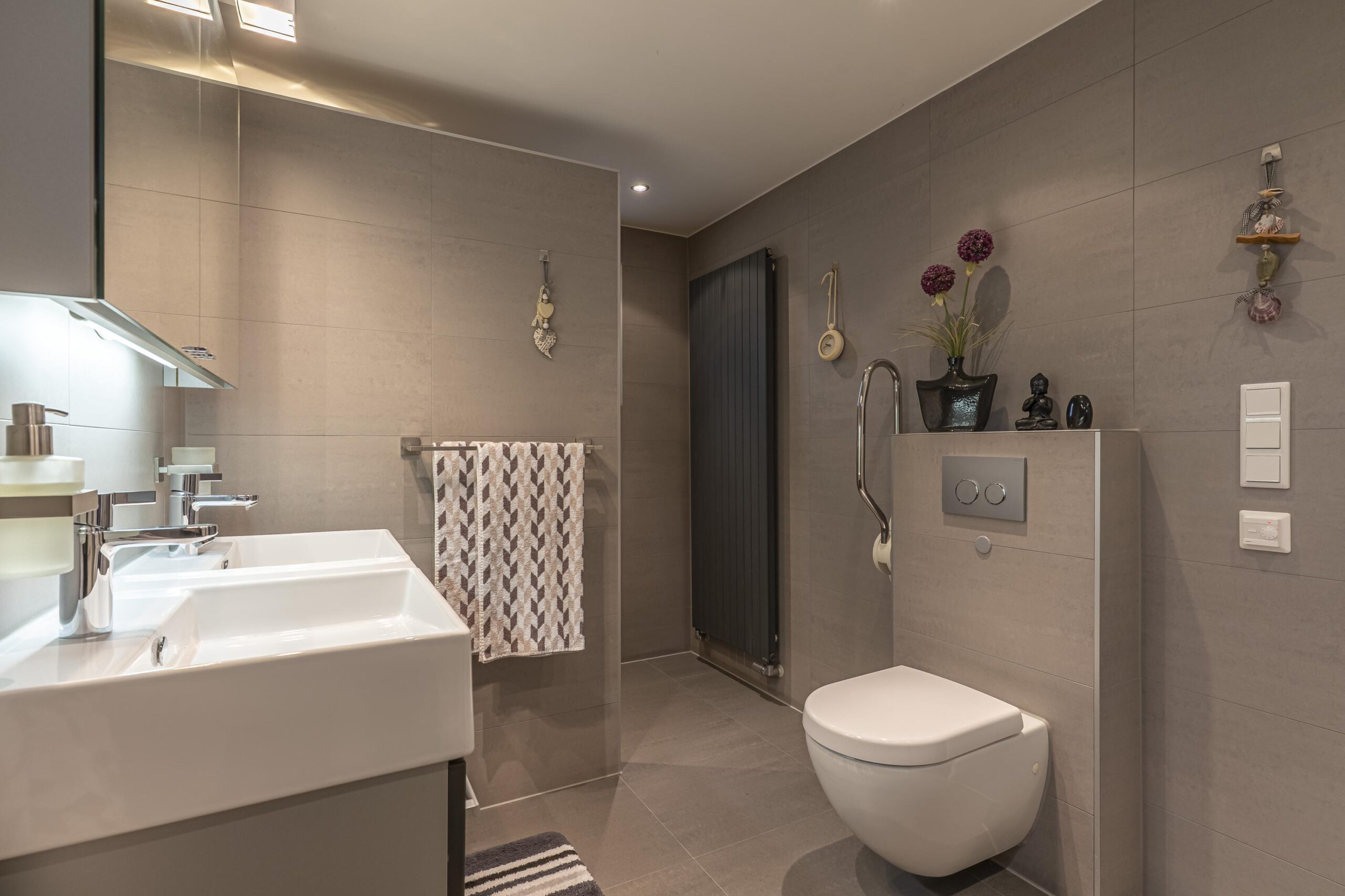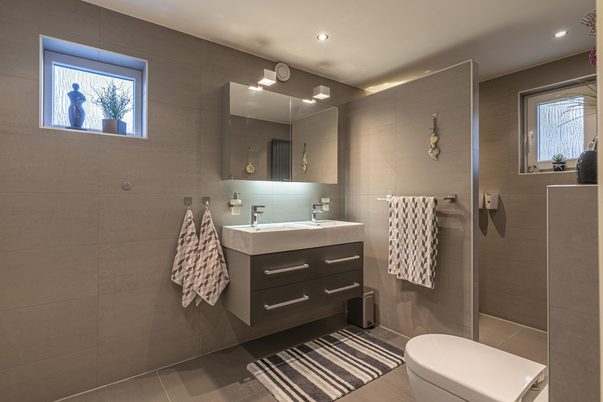 - Badkamervoorzieningen Toilet, dubbele wastafel, wastafelmeubel, inloopdouche