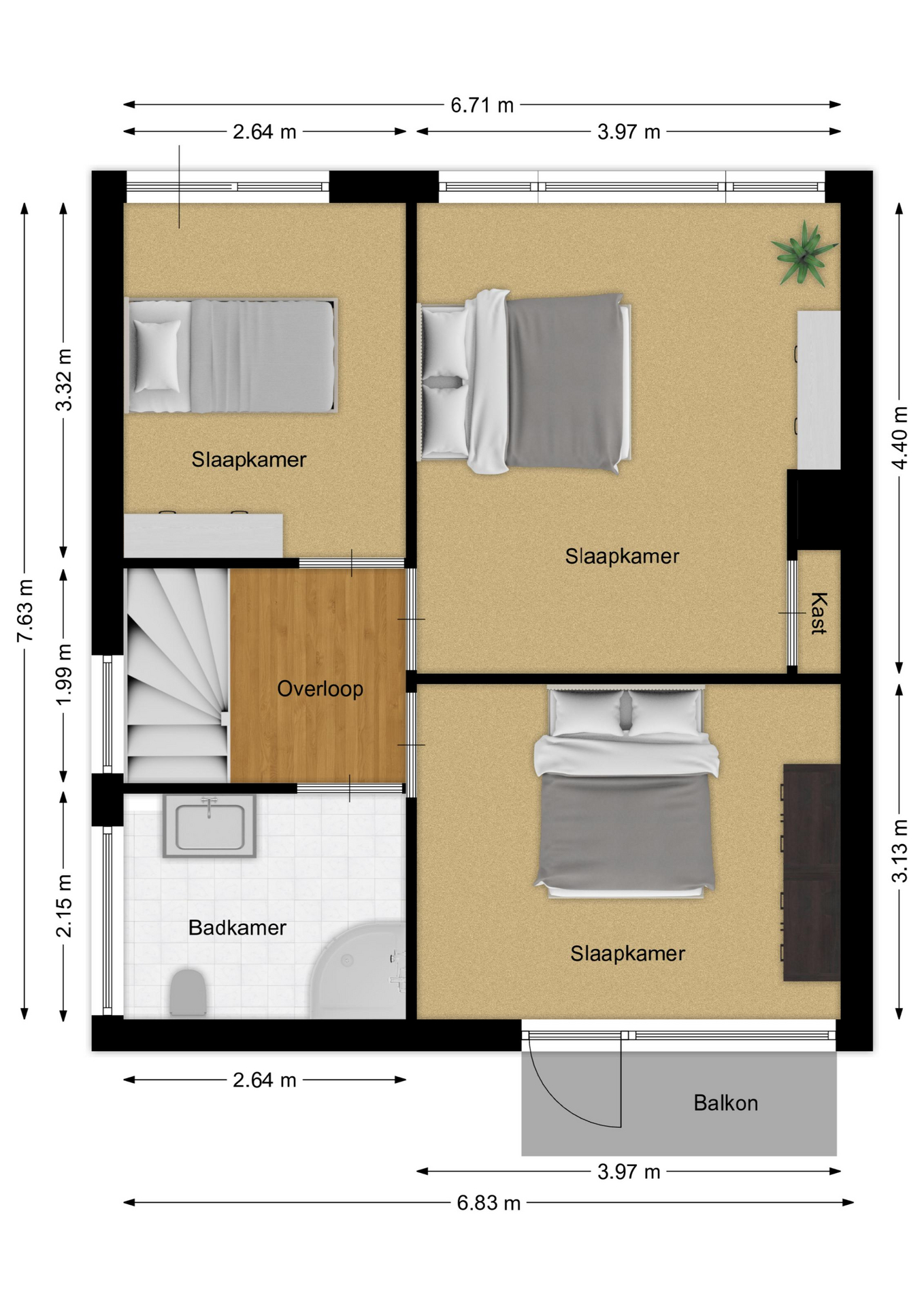 - Oppervlakte gebouwgebonden ca. 3 m2