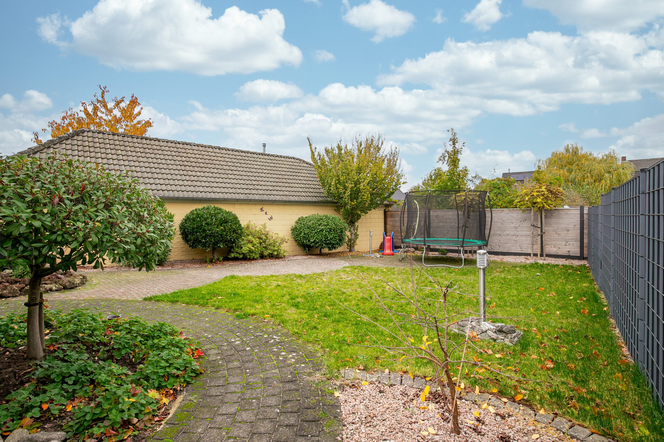 De zonnige, geheel omsloten achtertuin is bereikbaar vanuit de keuken, garage en via de zijingang. De tuin is deels beklinkerd, deels voorzien van gazon en beschikt over een aluminium terrasoverkapping met vorstvrije buitenkraan. De achterste schuttingdelen zijn in 2023 vernieuwd. Een fijne plek om in alle rust te genieten van het buitenleven.