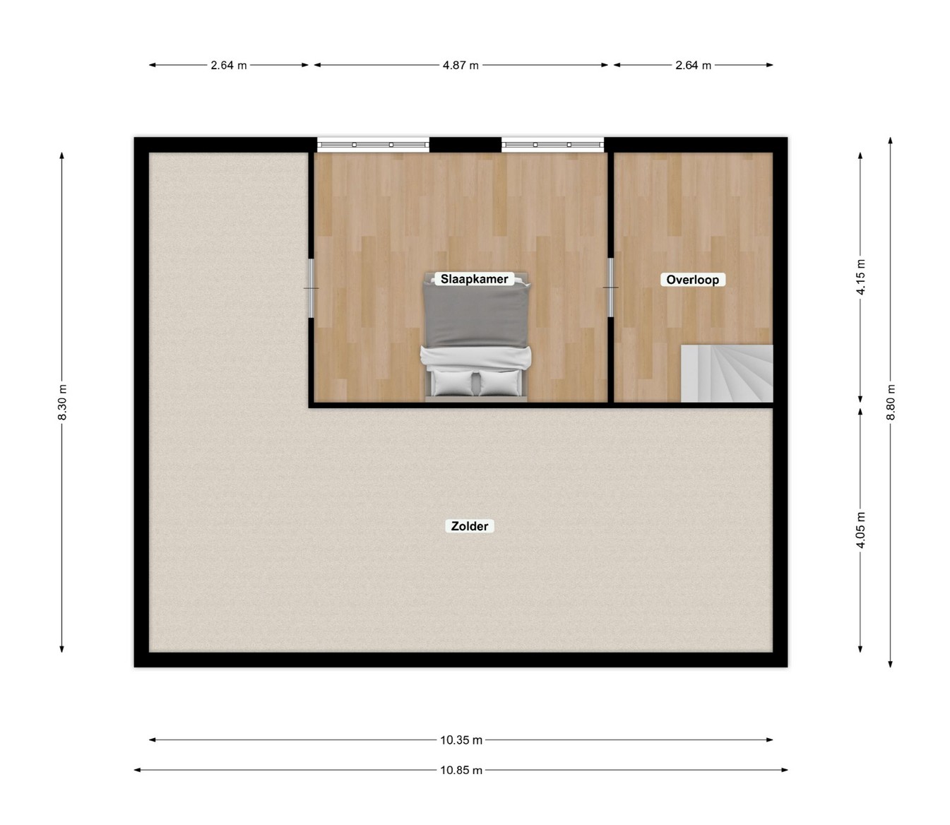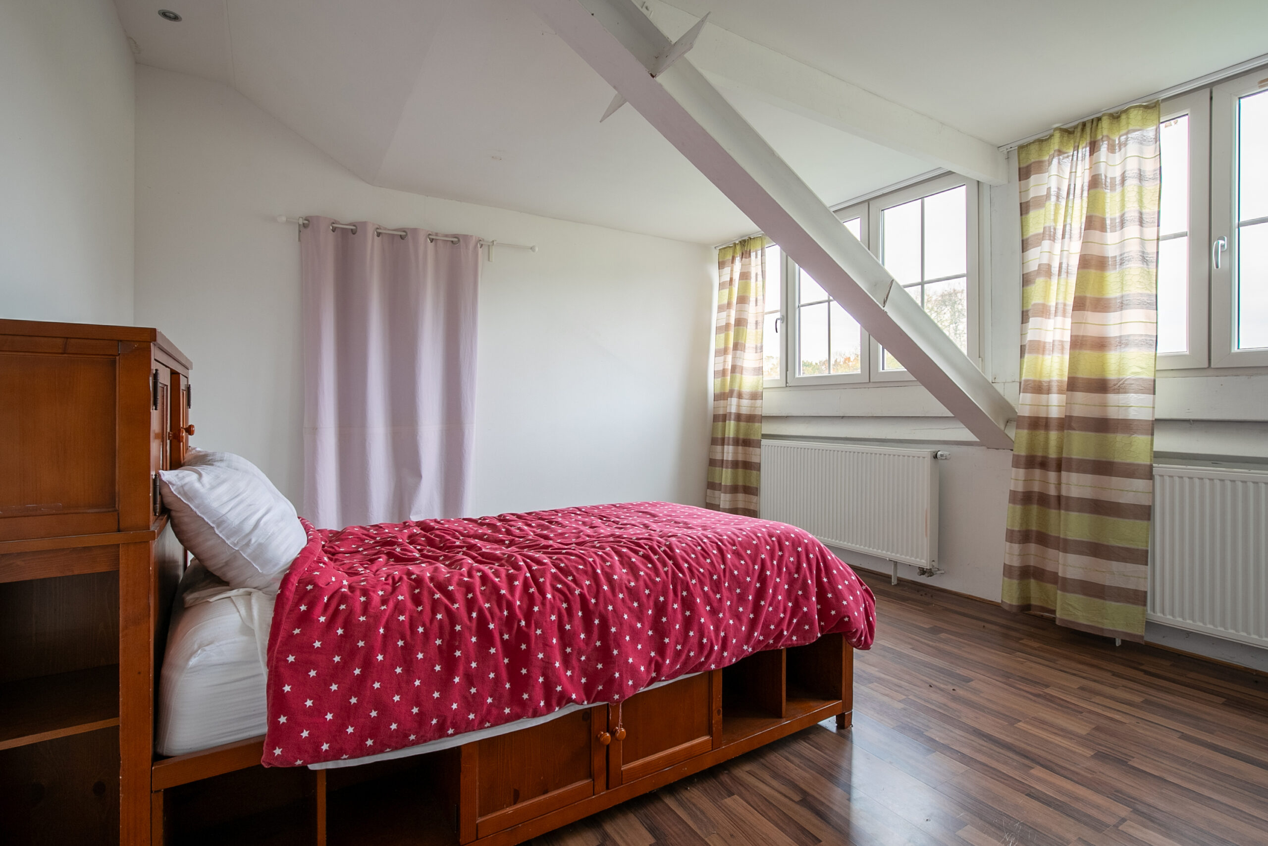 Via vaste trap is de tweede verdieping van de woning te bereiken. Deze verdieping is opgedeeld in overloop, vijfde slaapkamer (ca. 20m2 groot) en ruime bergzolder.