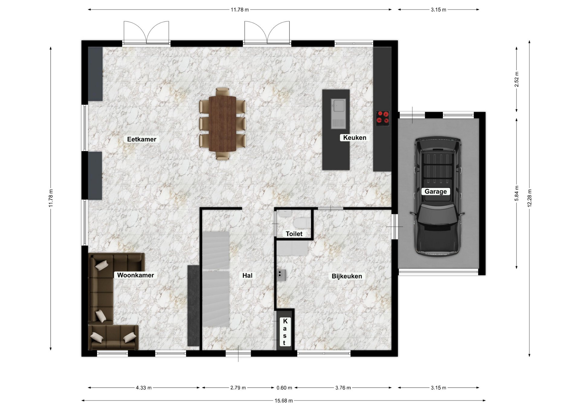 – Begane grond geheel voorzien van granieten vloer;