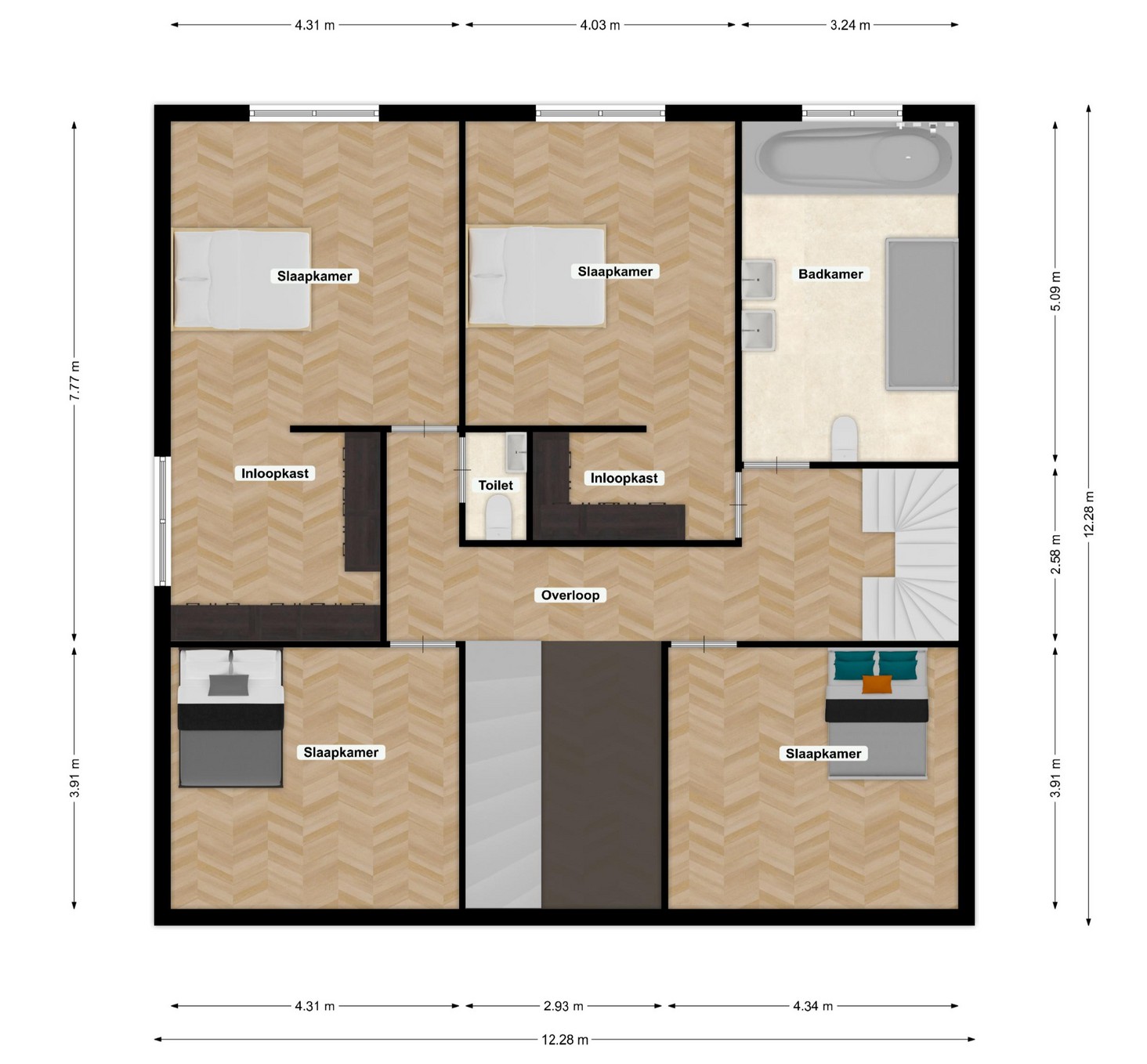 Alle vermelde afmetingen zijn indicatief en kunnen afwijken van de werkelijkheid