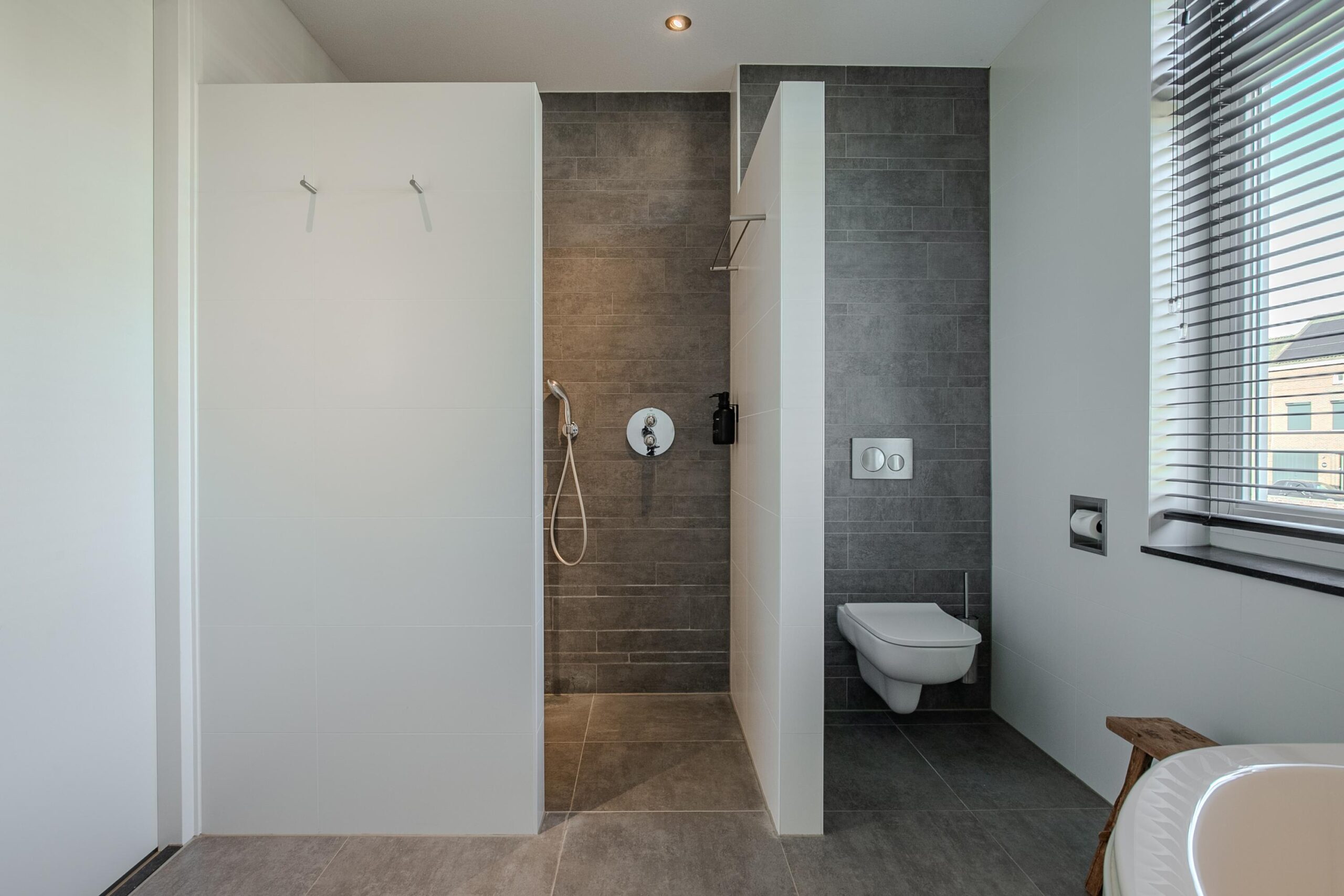 - Badkamervoorzieningen Ligbad, toilet, wastafelmeubel, inloopdouche, vloerverwarming