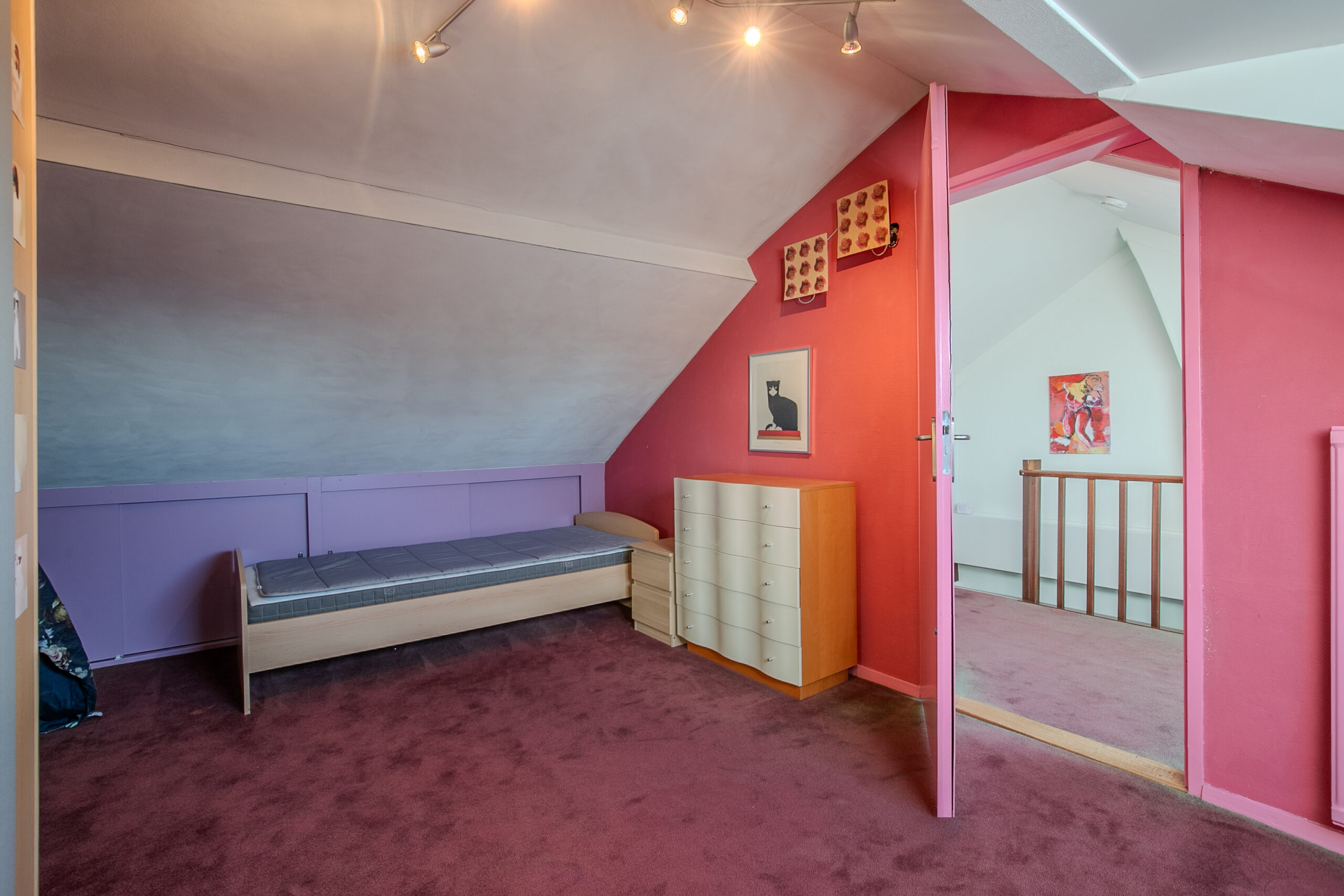 Ruime slaapkamer met Veluxdakraam en ook weer extra bergruimte onder de schuinte gecreëerd.