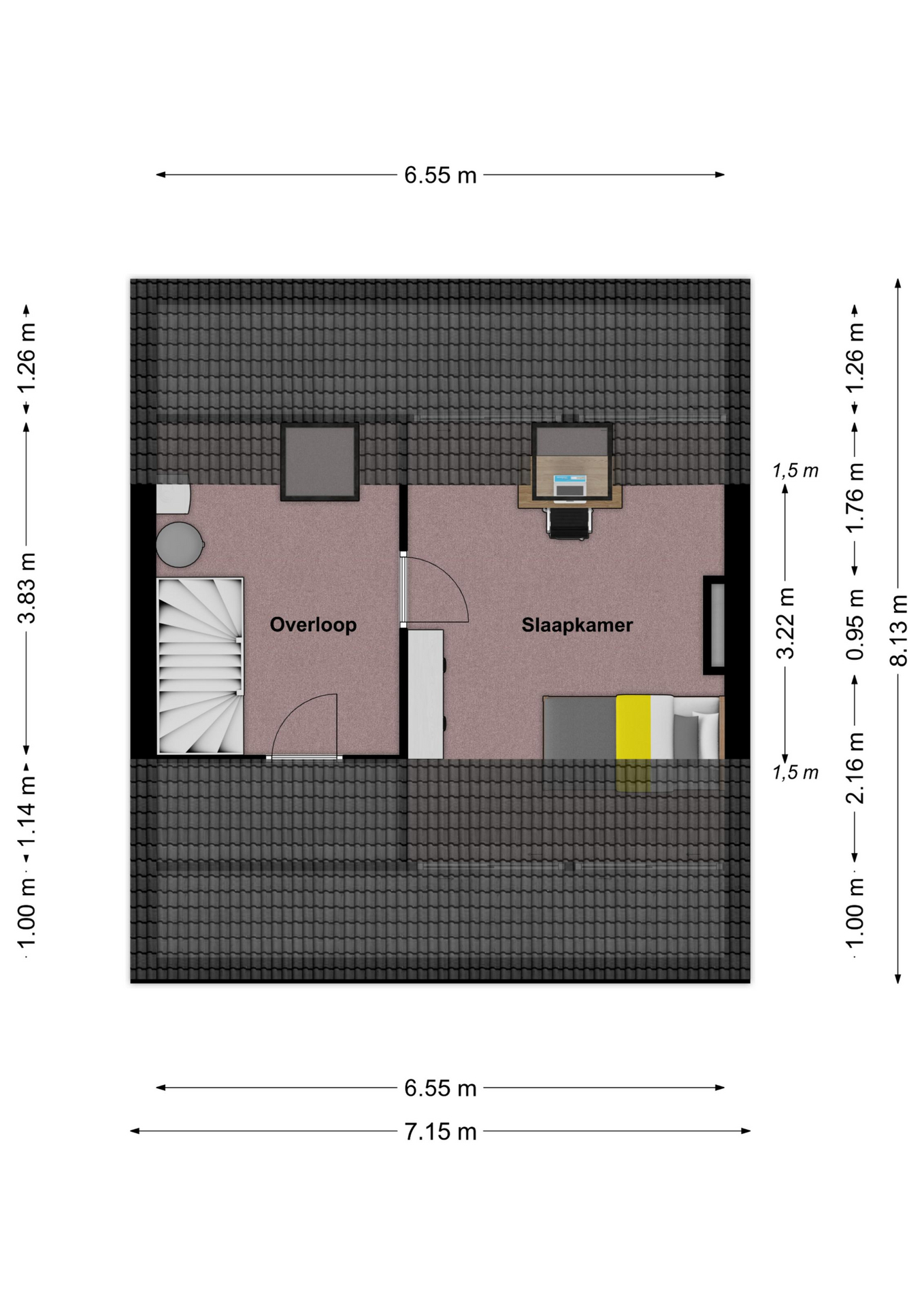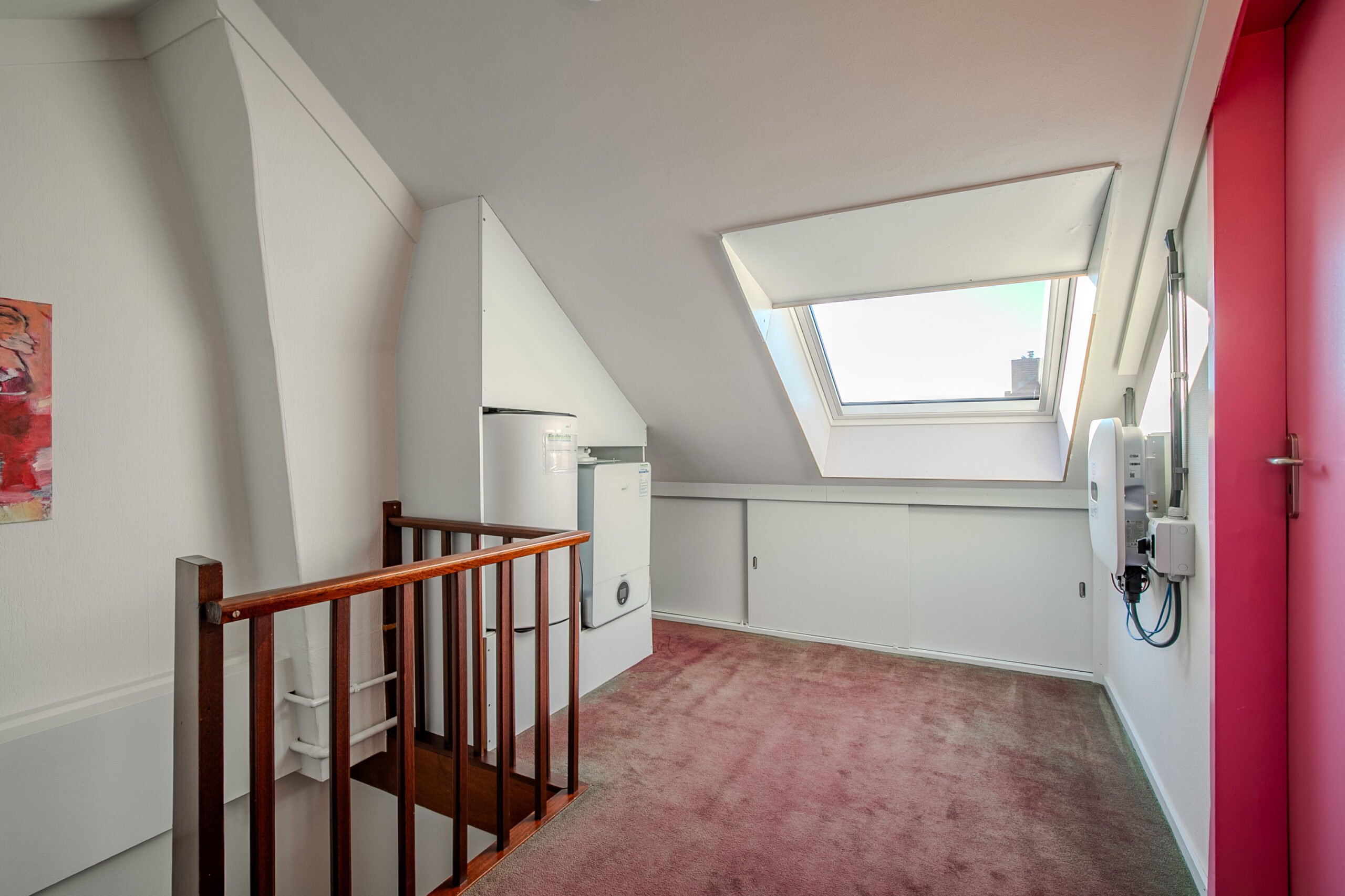 Via vaste trap te bereiken overloop met standplaats c.v.ketel (2017 eigendom) plus boiler en omvormer voor de zonnepanelen. Door het Velux dakraam is er voldoende daglichttoetreding. Tevens is op de overloop voldoende bergruimte gecreëerd.