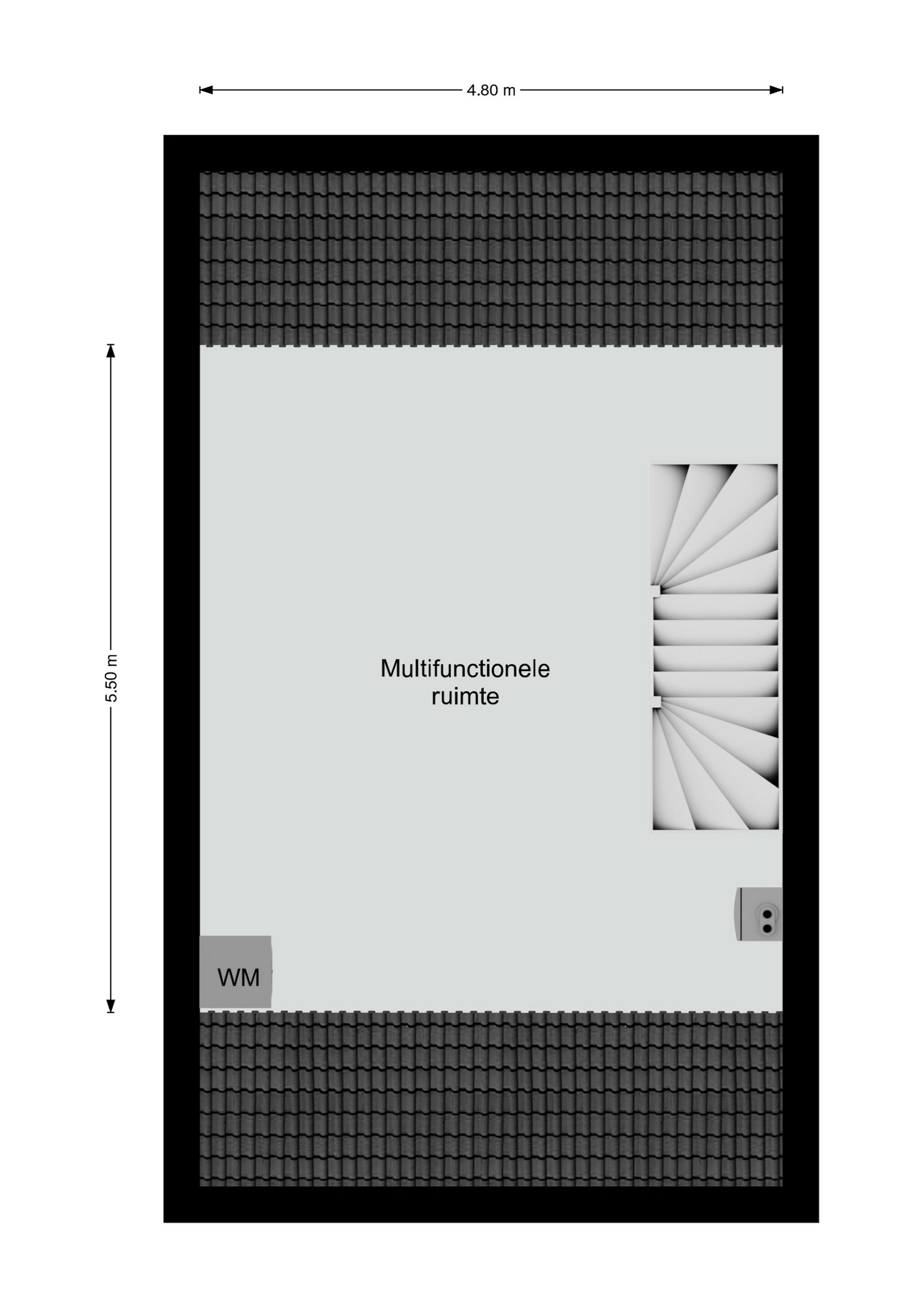 Middels een vaste trap toegankelijk. Dit is een multifunctionele, hoge ruimte en hier bevinden zich de aansluitpunten voor de wasapparatuur en de combi c.v.-installatie.