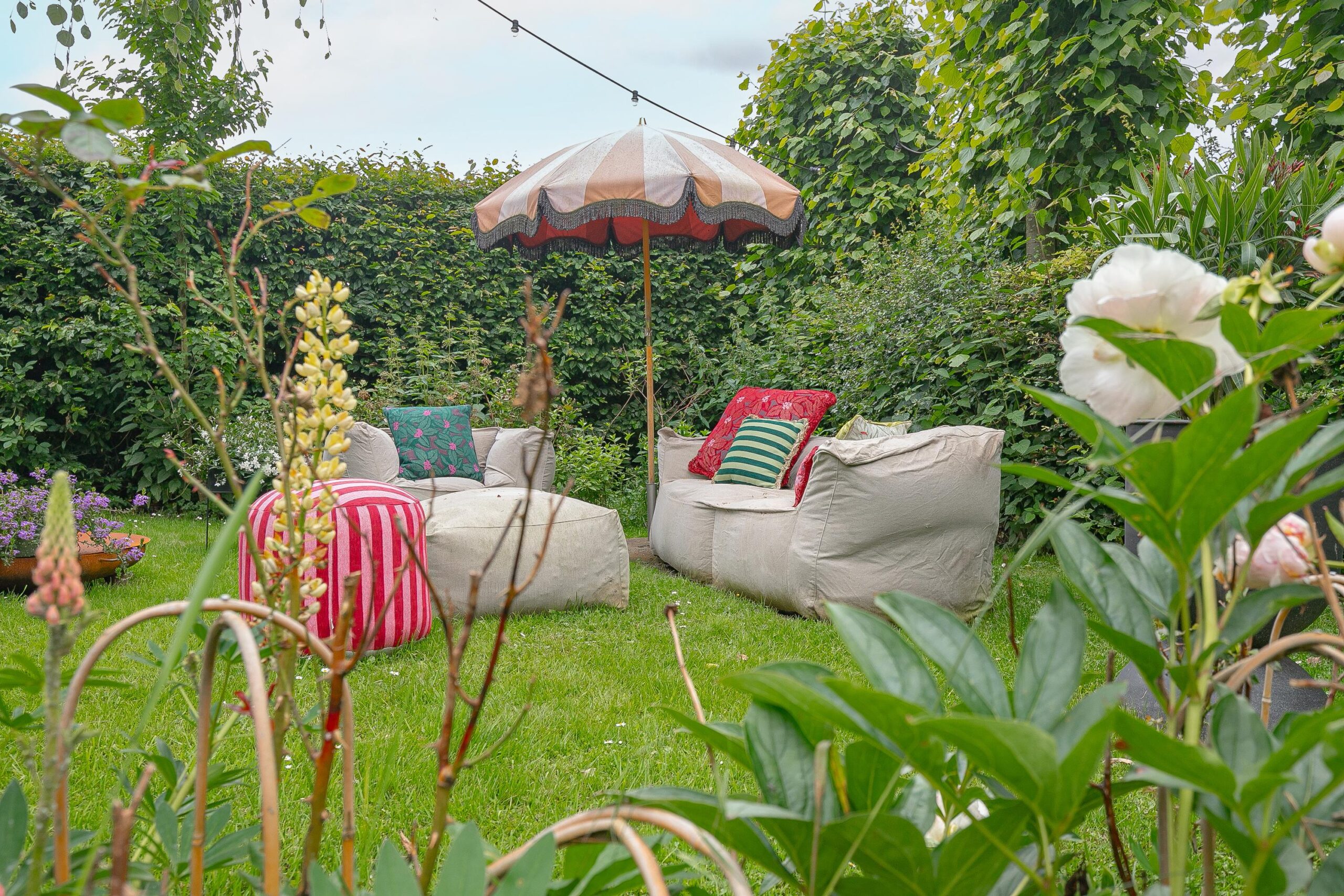 Vanuit de woning bereikbare, zonnig gesitueerde tuin voorzien van een royaal terras en gazon. De tuin beschikt over een optimale privacy.