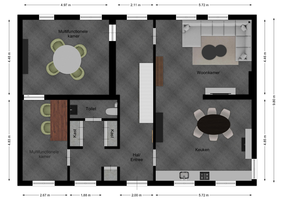 De begane grond van dit object wordt bijzonder efficiënt verwarmd door een combinatie van vloer- en wandverwarming.