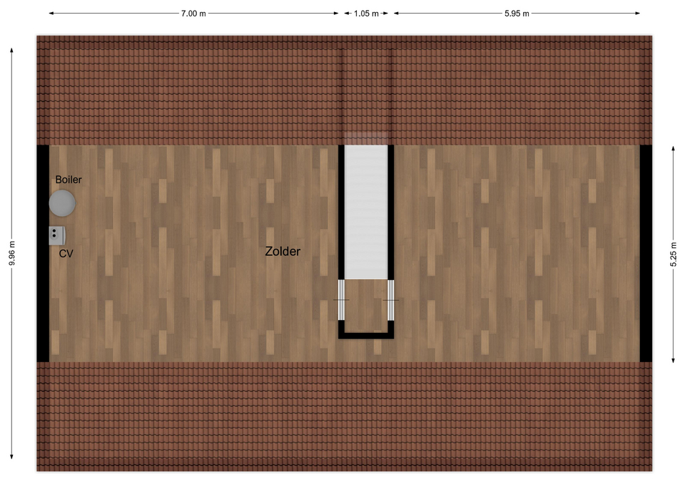 De CV ketel en boiler zijn eveneens gesitueerd op de tweede verdieping.