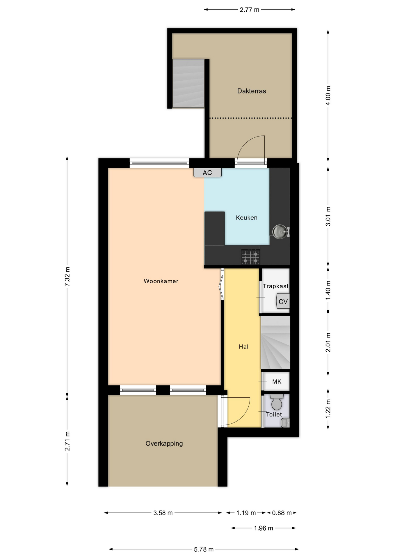 – Alle vermelde afmetingen zijn indicatief en kunnen afwijken van de werkelijkheid.