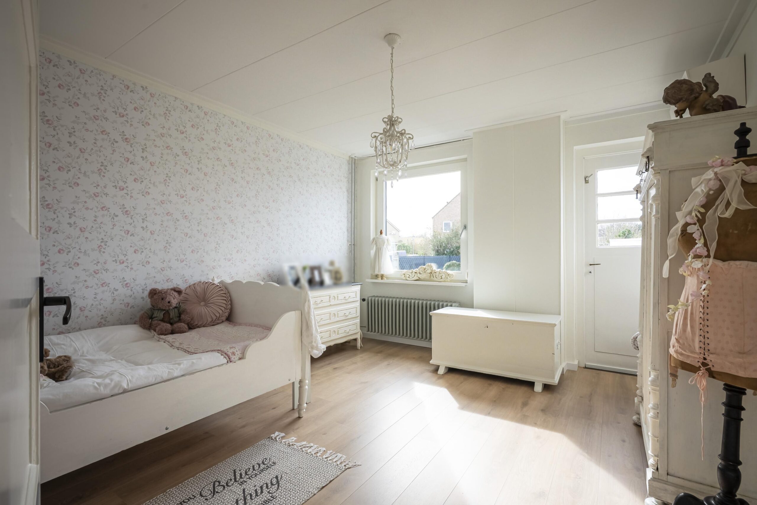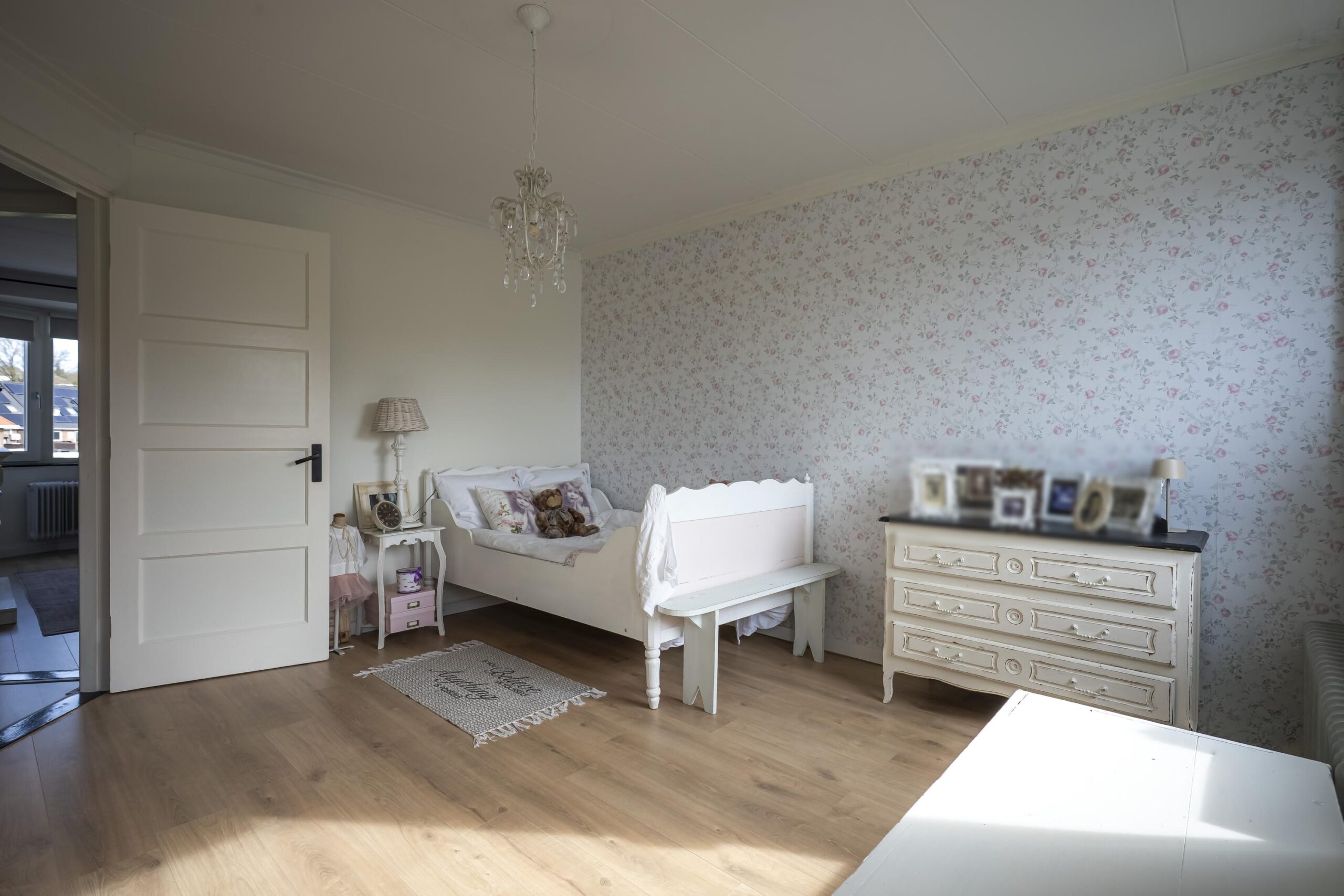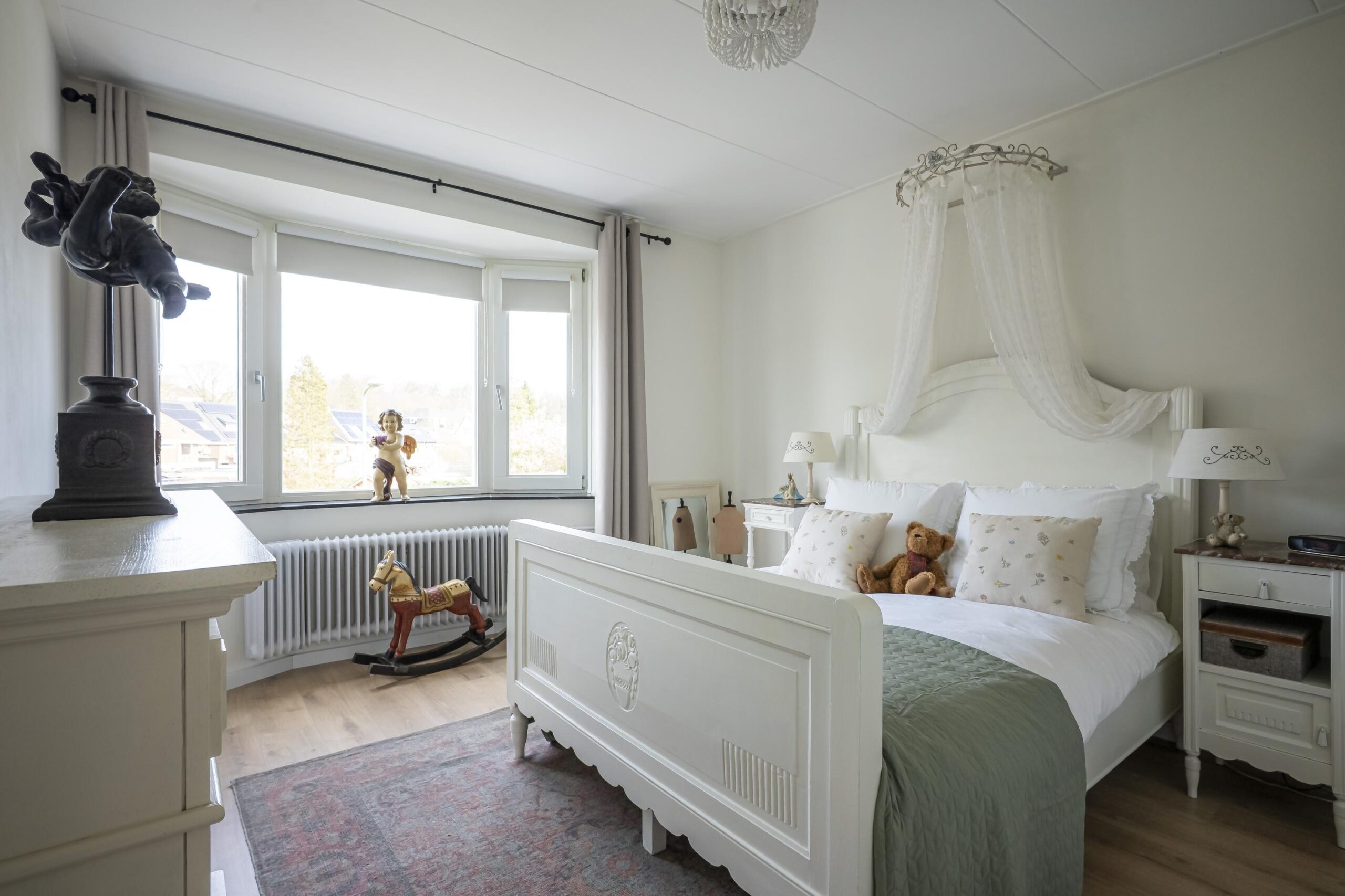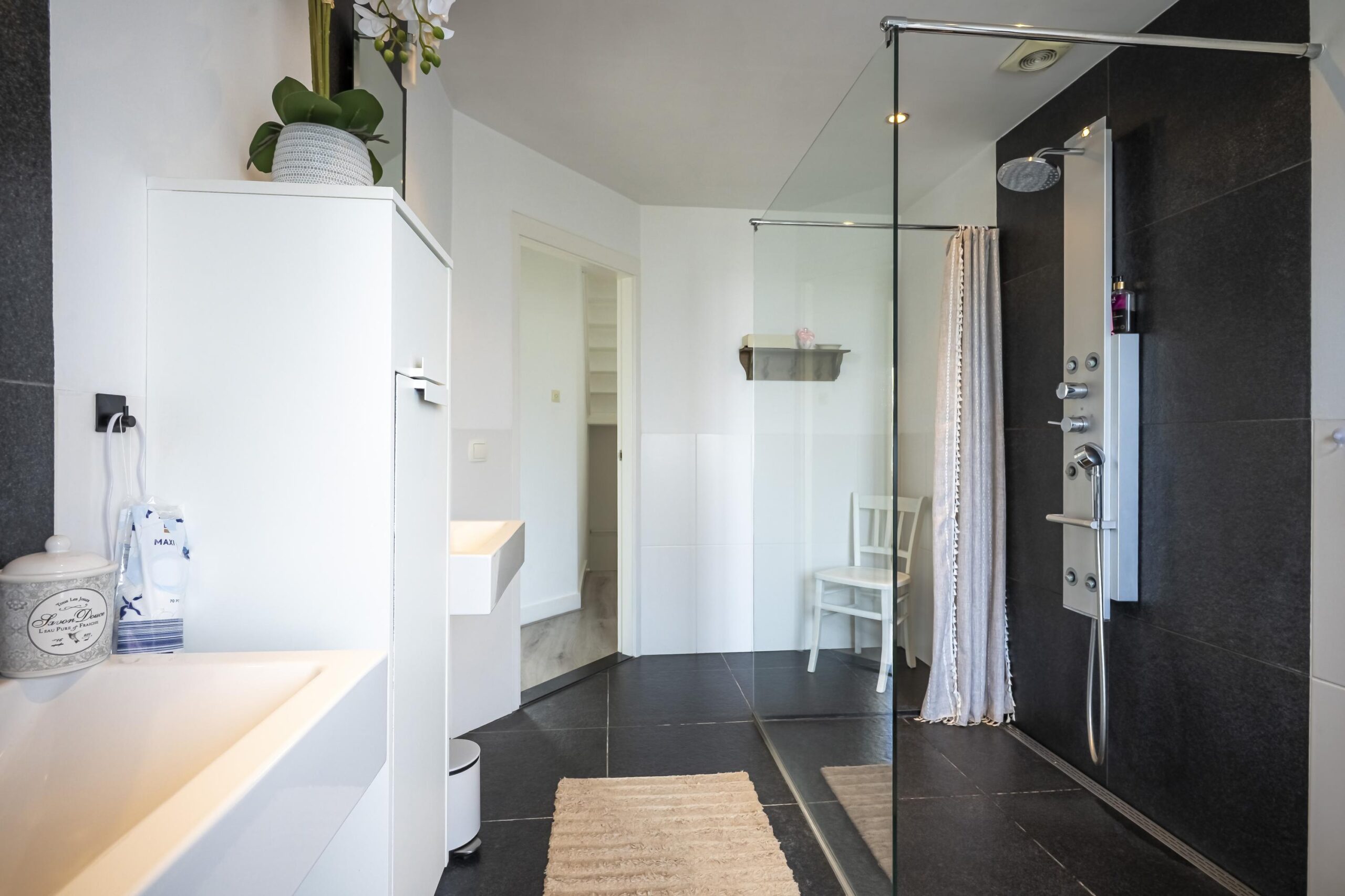 Overloop met toegang tot twee slaapkamers en badkamer. De slaapkamer aan de achterzijde is voorzien van een laminaatvloer en airco installatie. De tweede slaapkamer is eveneens voorzien van laminaatvloer en erker. Ruime grotendeels betegelde badkamer (2018) met plavuizenvloer, inloopdouche, 2e zwevend toilet, bidet, 2 vaste wastafels met opbergkasten, design radiator en inbouwspots.