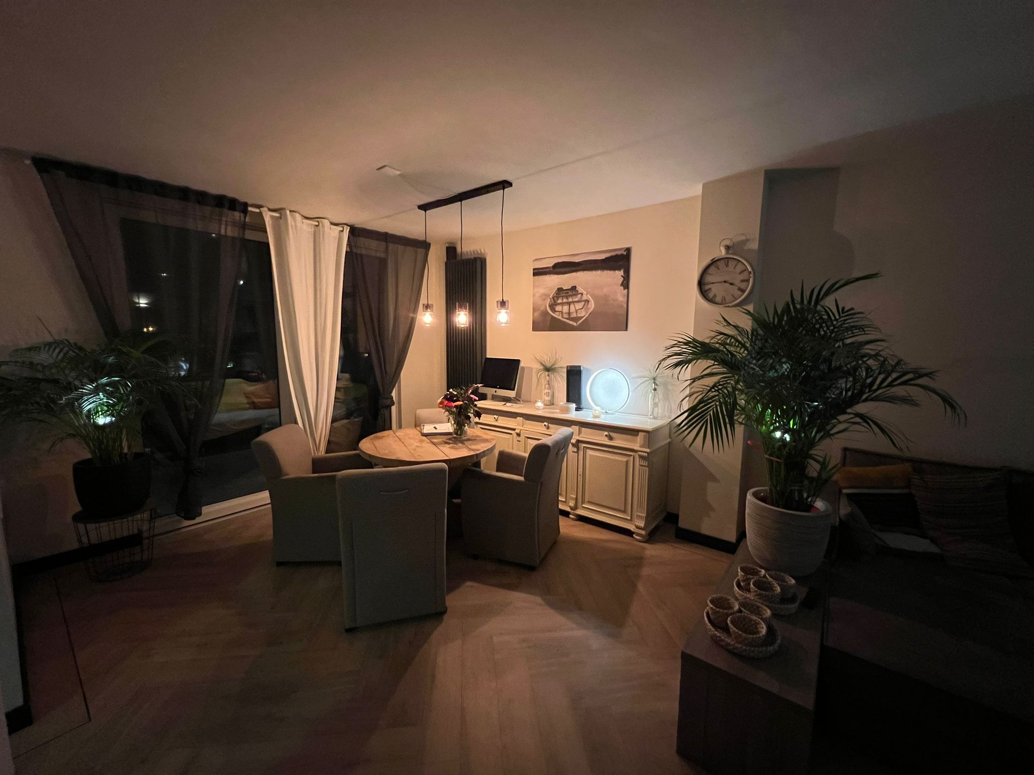 Entree via de hal met toilet en fontein, bergkast en meterkast. De lichte woonkamer is voorzien van een pvc visgraatvloer en staat in verbinding met de halfopen keuken. De keuken beschikt over een koelkast met vriesvak, gootsteen, 4-pits gasfornuis, vaatwasser, magnetron, airfryer, afzuigkap en veel bergruimte.