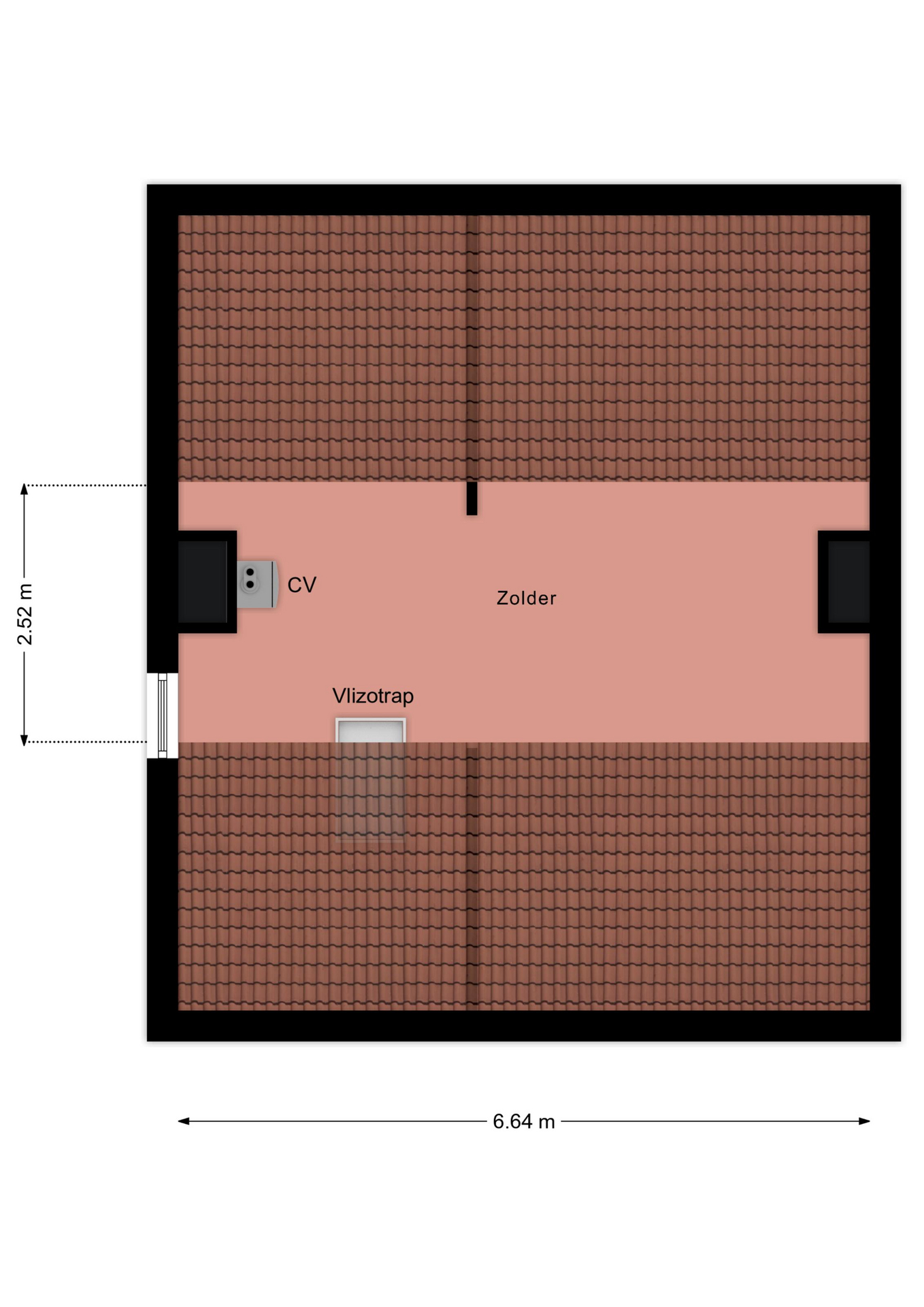 Via een vlizotrap te bereiken zolder van ca. 15 m², geschikt als bergruimte en met de opstelplaats van de cv-ketel.
