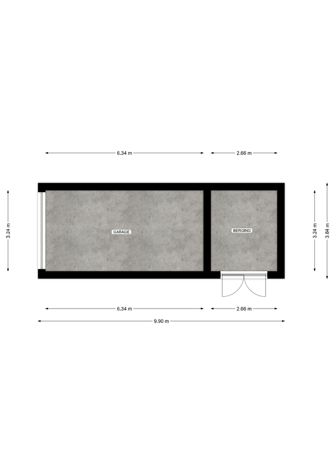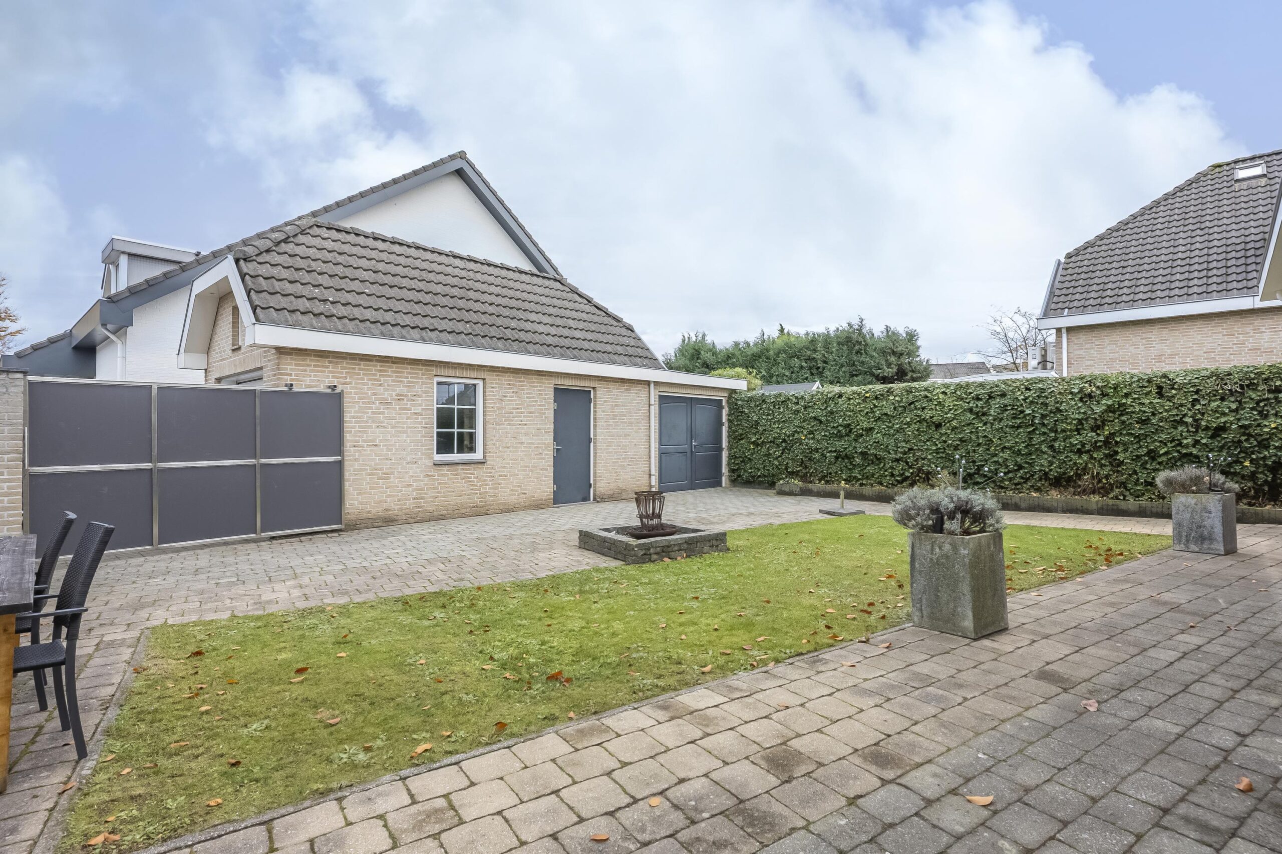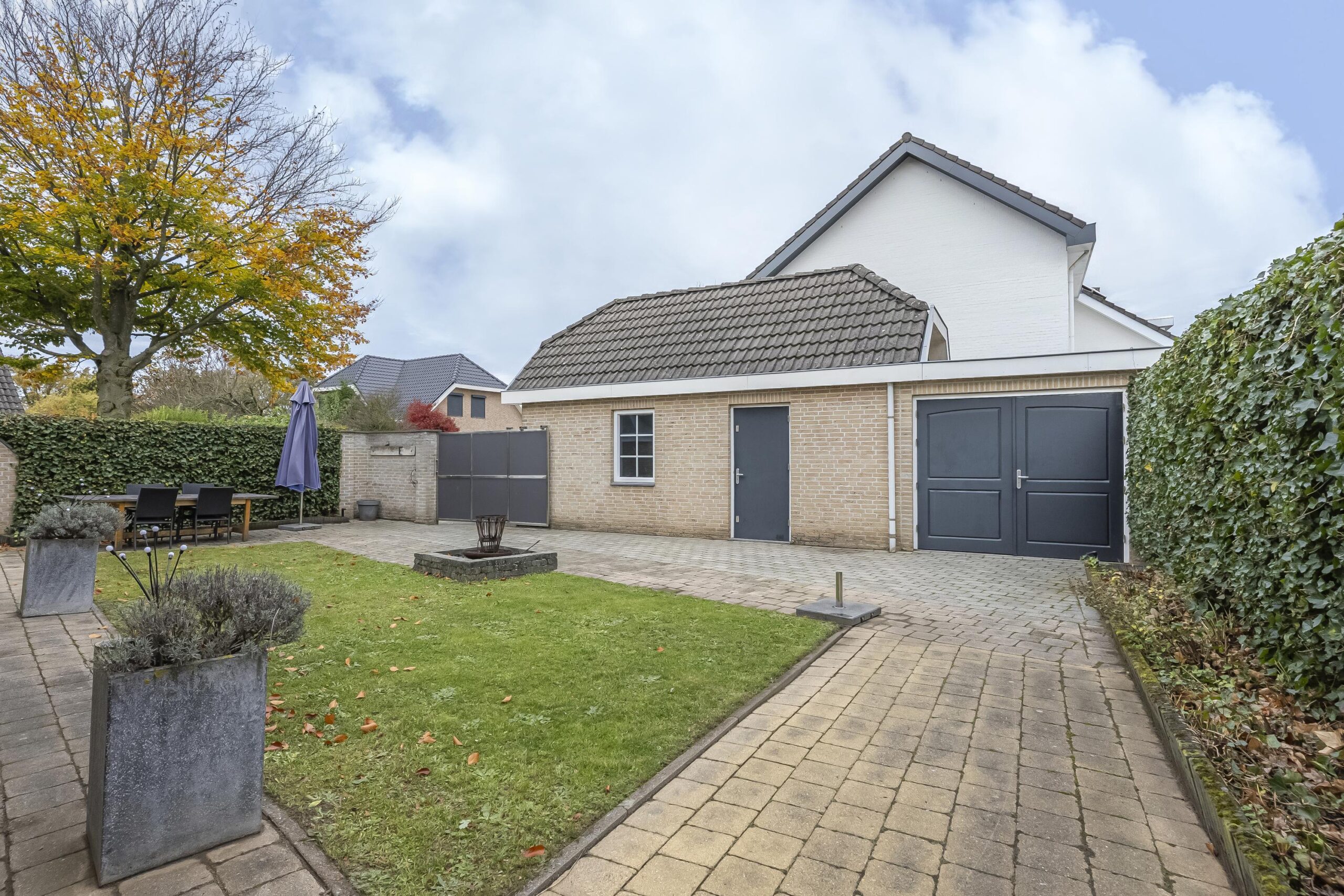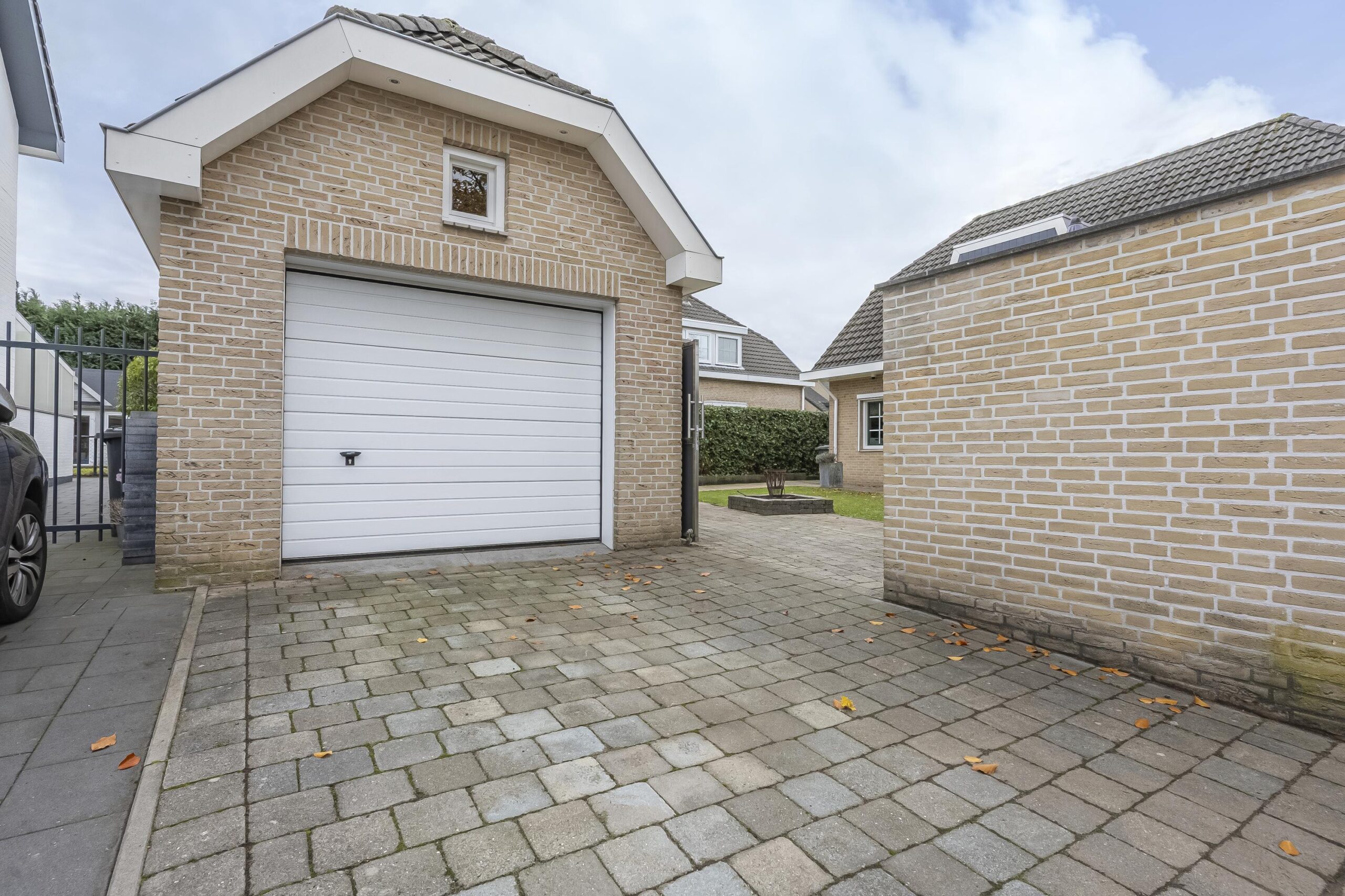 Via de tuin is de grote garage (ca. 3,25 x 6,35 m) bereikbaar, voorzien van een elektrische sectionaalpoort, vliering en een extra aangebouwde berging (ca. 3,25 x 2,70 m).