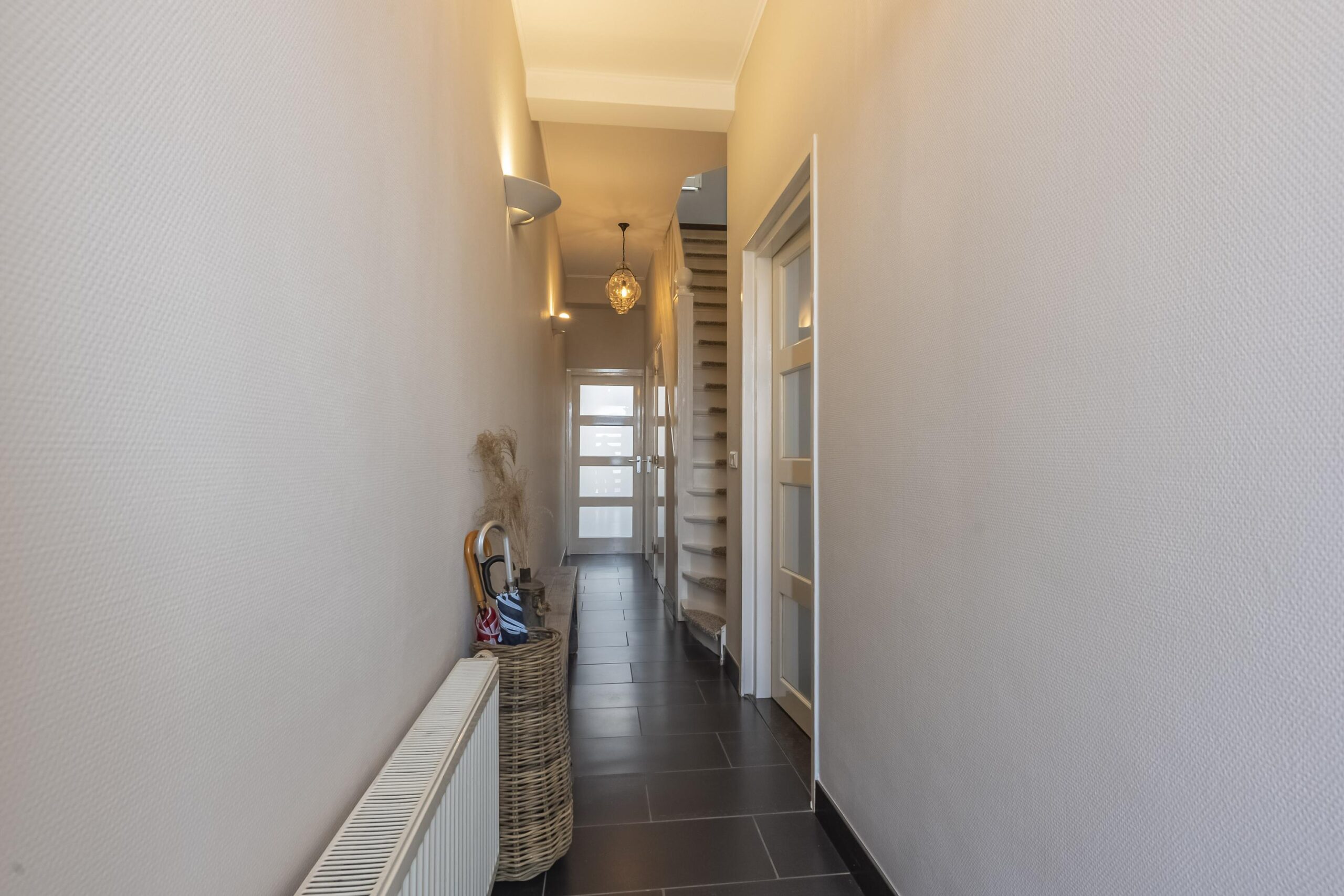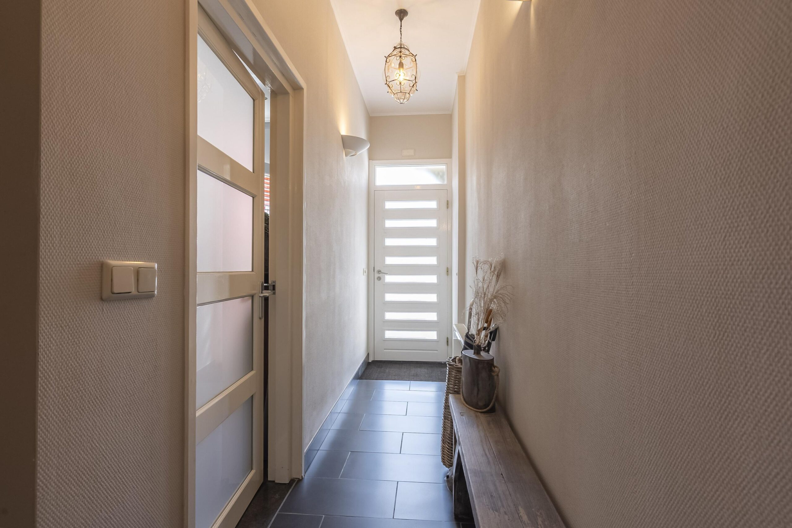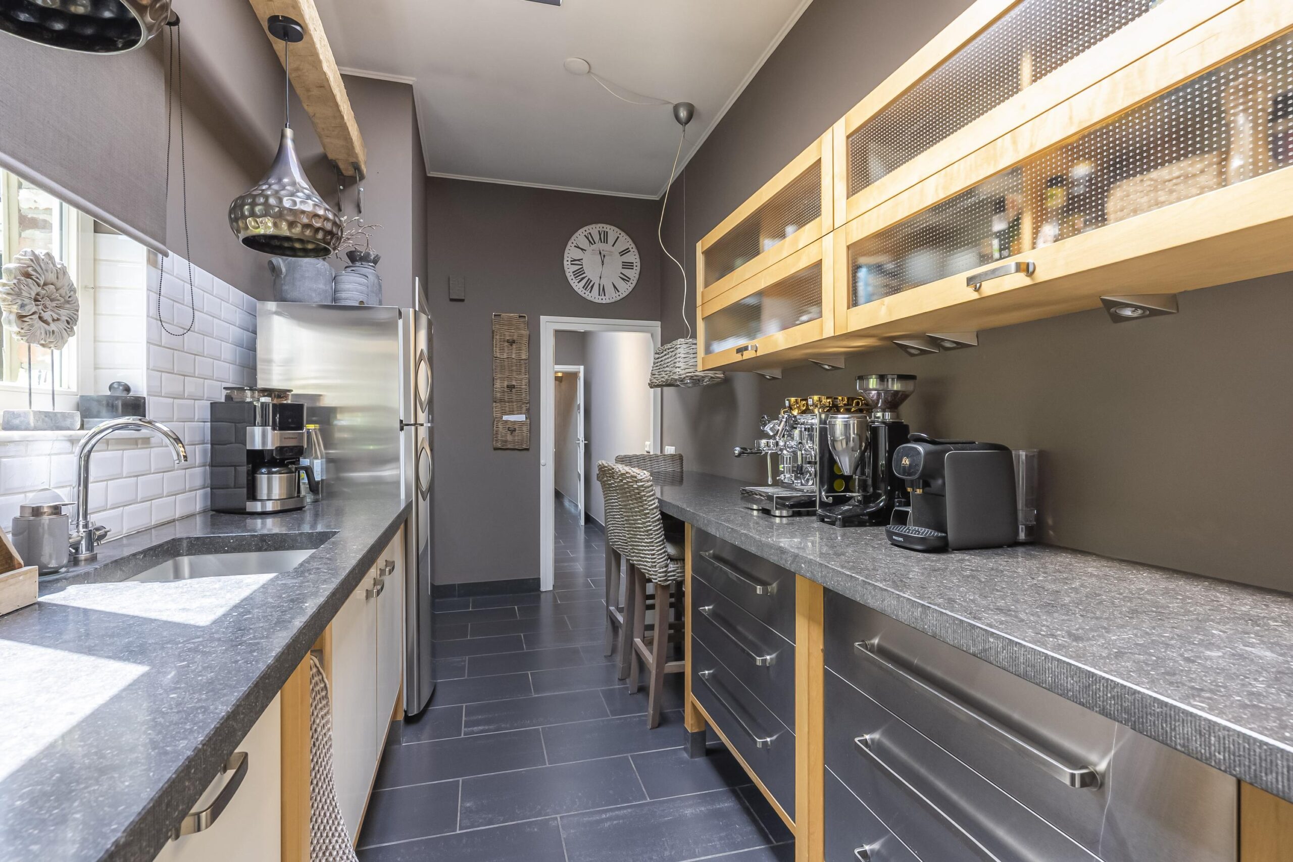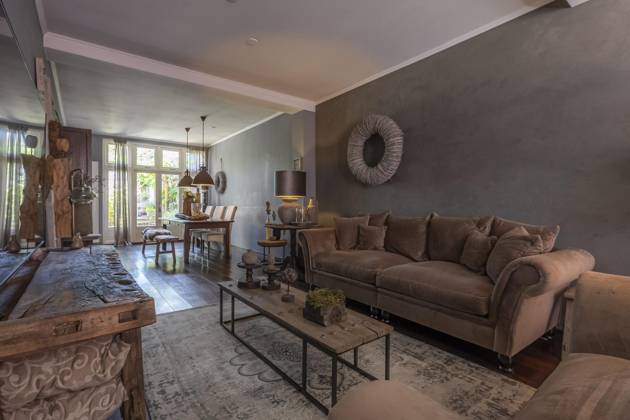 Begane grond: hal, meterkast, trappenhuis en het zwevende toilet met fonteintje. Tevens is hier een kantoor-. hobbyruimte die tevens dienst doet als garderobe. Ruime woonkamer met een prachtige Zuid-Amerikaanse hardhouten vloer en openslaande deuren naar tuin. De gesloten keuken heeft een tegelvloer en een moderne keuken-installatie met diverse apparatuur waaronder een 5-pits gasfornuis merk Sittal met een electrische hete lucht oven plus eetbarretje. Het aanrechtblad is van Belgisch hardsteen. Aansluitend is de bijkeuken gesitueerd waar ook de wasmachine-aansluiting zich bevindt. Vanuit hier is de ook de fraai aangelegde en sfeervolle tuin bereikbaar. Deze biedt alle privacy en beschikt tevens over een tuinhuis voor opslag.