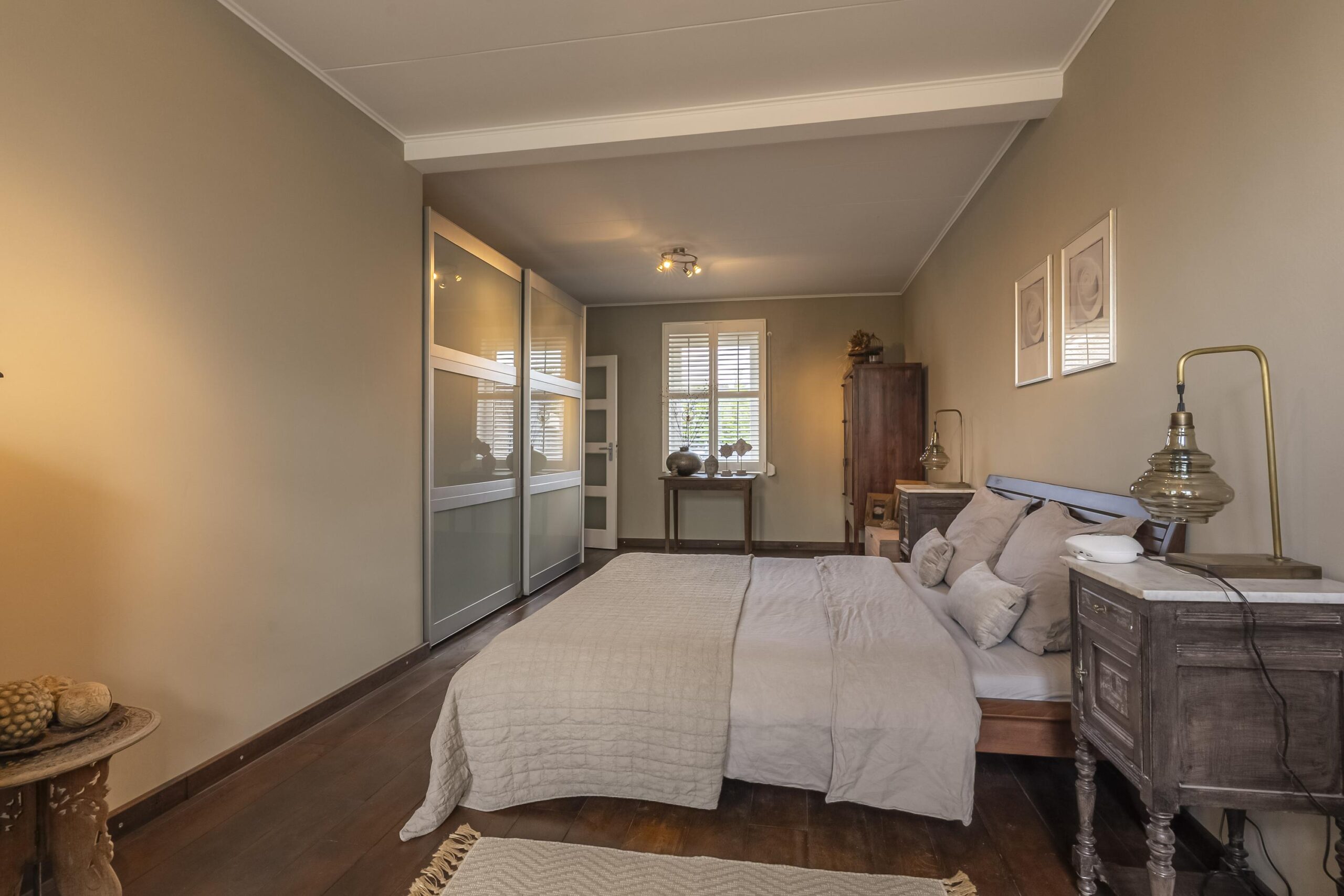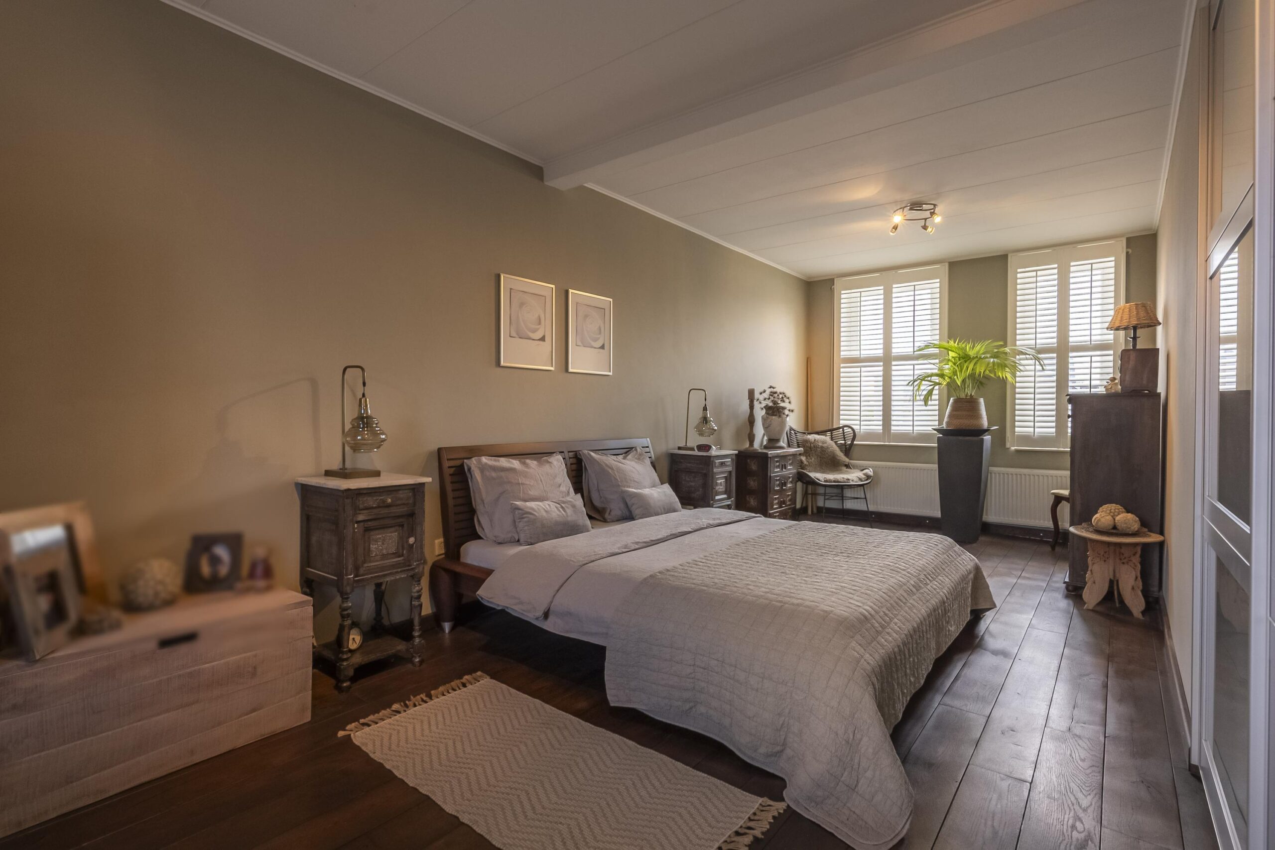 Eerste verdieping: overloop met doorlopende eiken vloer, één ruime slaapkamer momenteel met mogelijkheid tot splitsen in twee kamers. De badkamer is geheel betegeld en ingericht met een ligbad, separate douche, een dubbel wastafelmeubel en een 2e toilet.