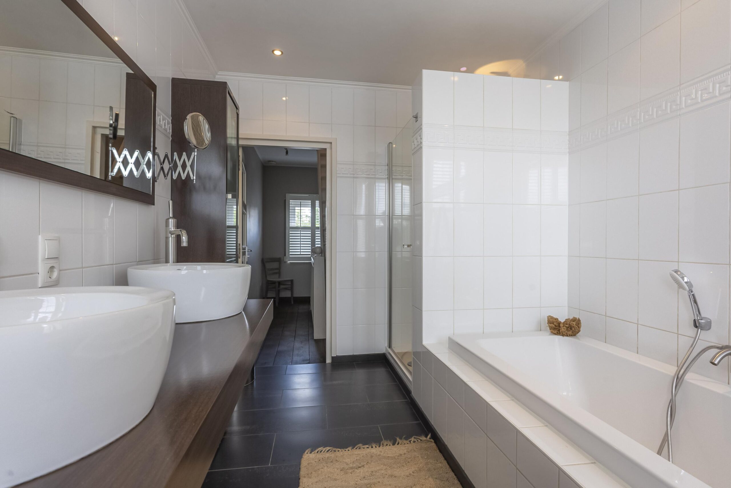 - Badkamervoorzieningen Ligbad, toilet, douche, dubbele wastafel