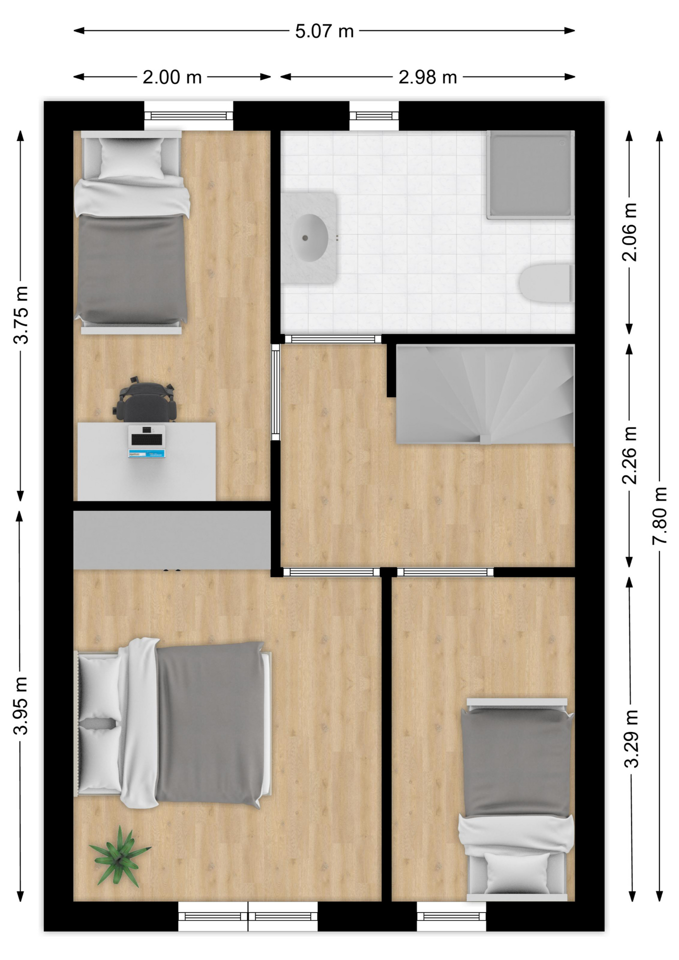 – “De woning beschikt over in totaal 99 m² gebruiksoppervlakte. Conform de meetinstructie betreft dit momenteel circa 80 m² woonoppervlakte en 19 m² overige inpandige ruimte. Door het plaatsen van een dakraam kan de zolder eenvoudig worden meegenomen als woonruimte, waardoor het totale woonoppervlak circa 99 m² bedraagt.”