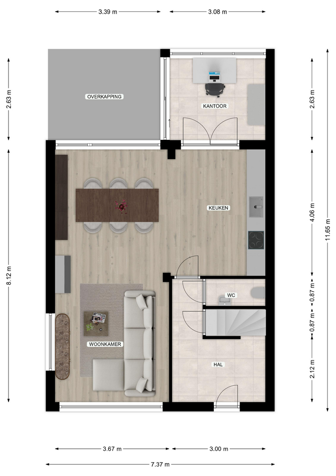 - Oppervlakte gebouwgebonden ca. 13 m2