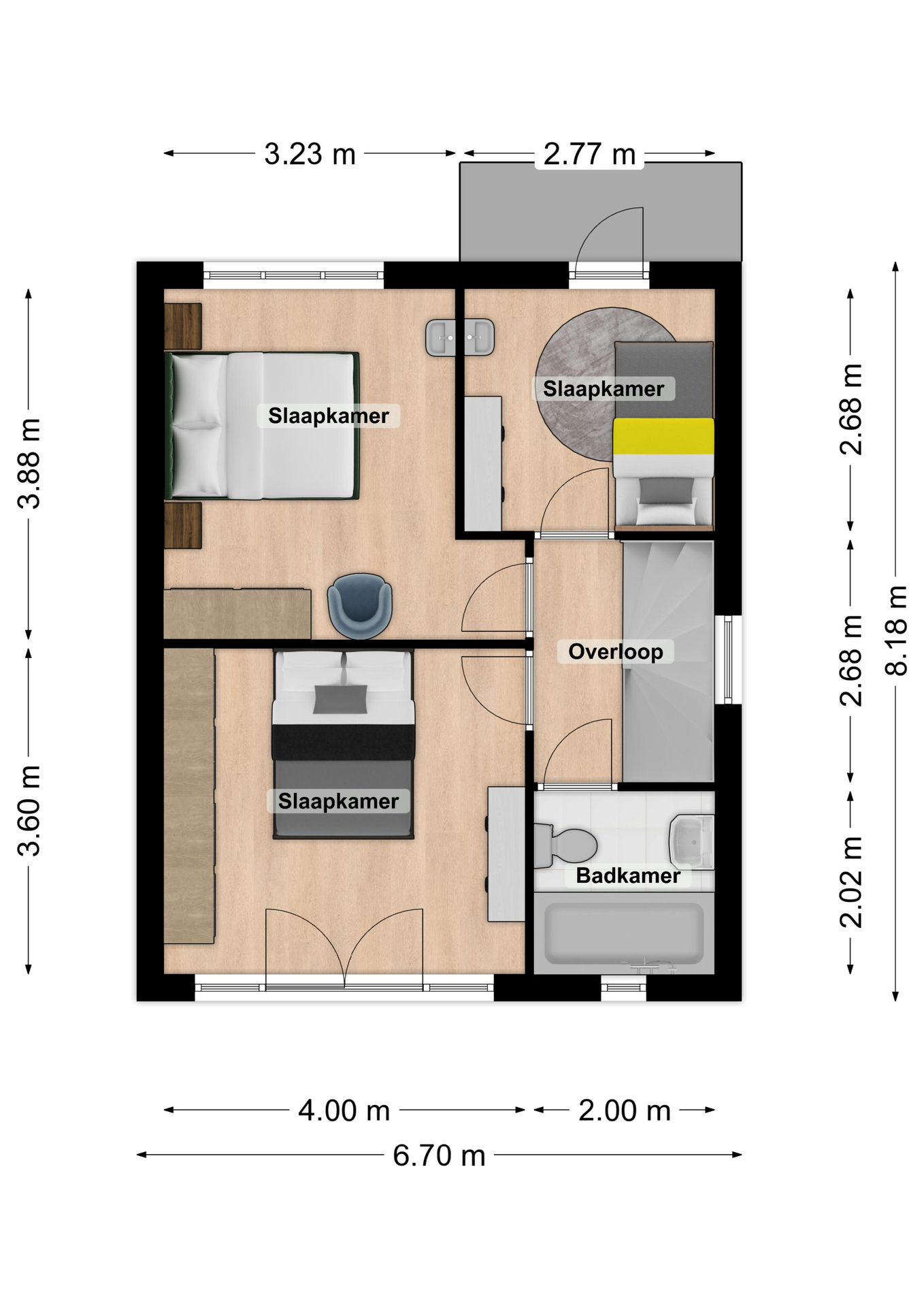 - Oppervlakte gebouwgebonden ca. 5 m2