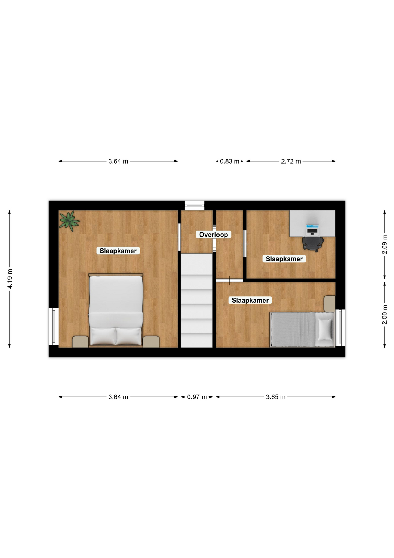 Alle slaapkamers zijn voorzien van doorlopende laminaatvloeren en strak afgewerkte wanden in stucwerk, wat zorgt voor een verzorgde en moderne uitstraling.