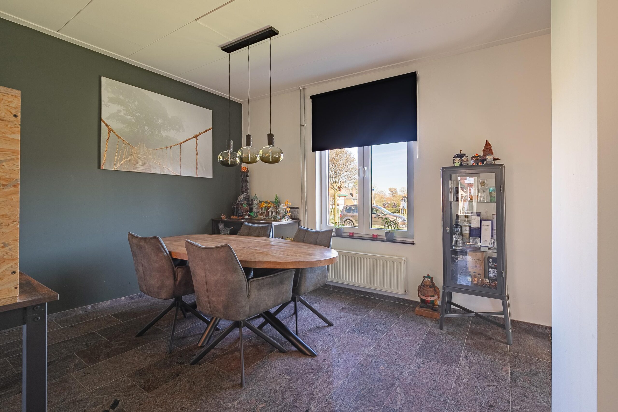 De sfeervolle woonkamer is aan de tuinzijde gelegen en biedt voldoende ruimte voor een royale loungebank. Aan de voorzijde bevindt zich de eetkamer, welke in directe verbinding staat met de semi-open keuken. De keuken is opgesteld in een praktische hoekopstelling en voorzien van diverse inbouwapparatuur, waaronder een koelkast, vaatwasser, oven en keramische kookplaat. De gehele begane grond is afgewerkt met strakke wandafwerking en een stijlvolle granieten vloer.